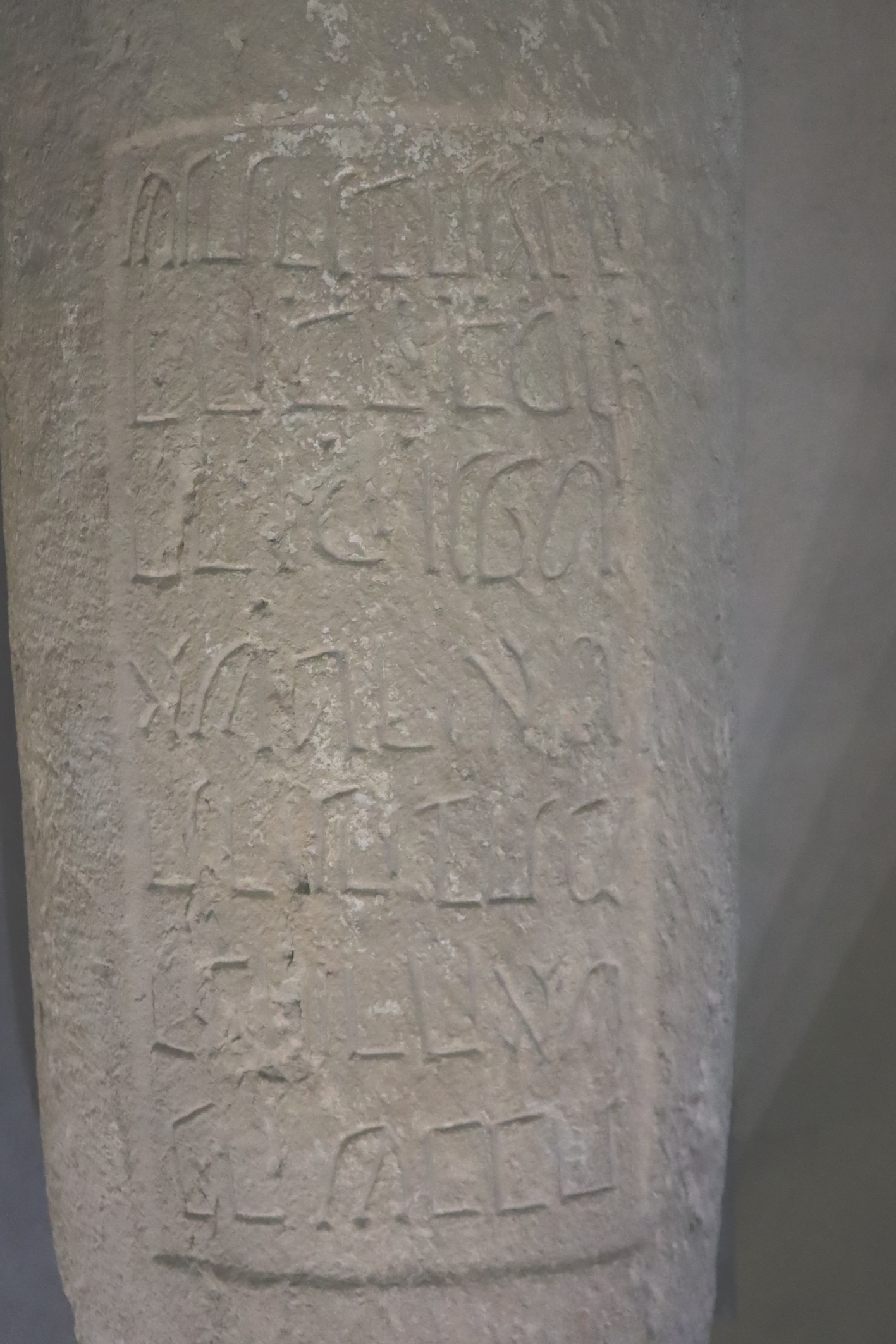 Lastra in pietra calcarea scolpita a forma di sezione pentagonale irregolare. In uno specchio rettangolare leggermente ribassato di 0,7 cm è incisa l'iscrizione sepolcrale ebraica dedicata ad Astruga figlia di Maestro Astruq. Per lungo tempo la stele è stata riutilizzata come elemento architettonico per il portale d'accesso al cortile di Casino Lepore in Contrada Sant'Elena. In questa posizione l'iscrizione risultava difficilmente leggibile perché capovolta
