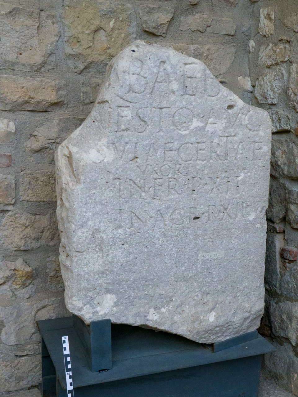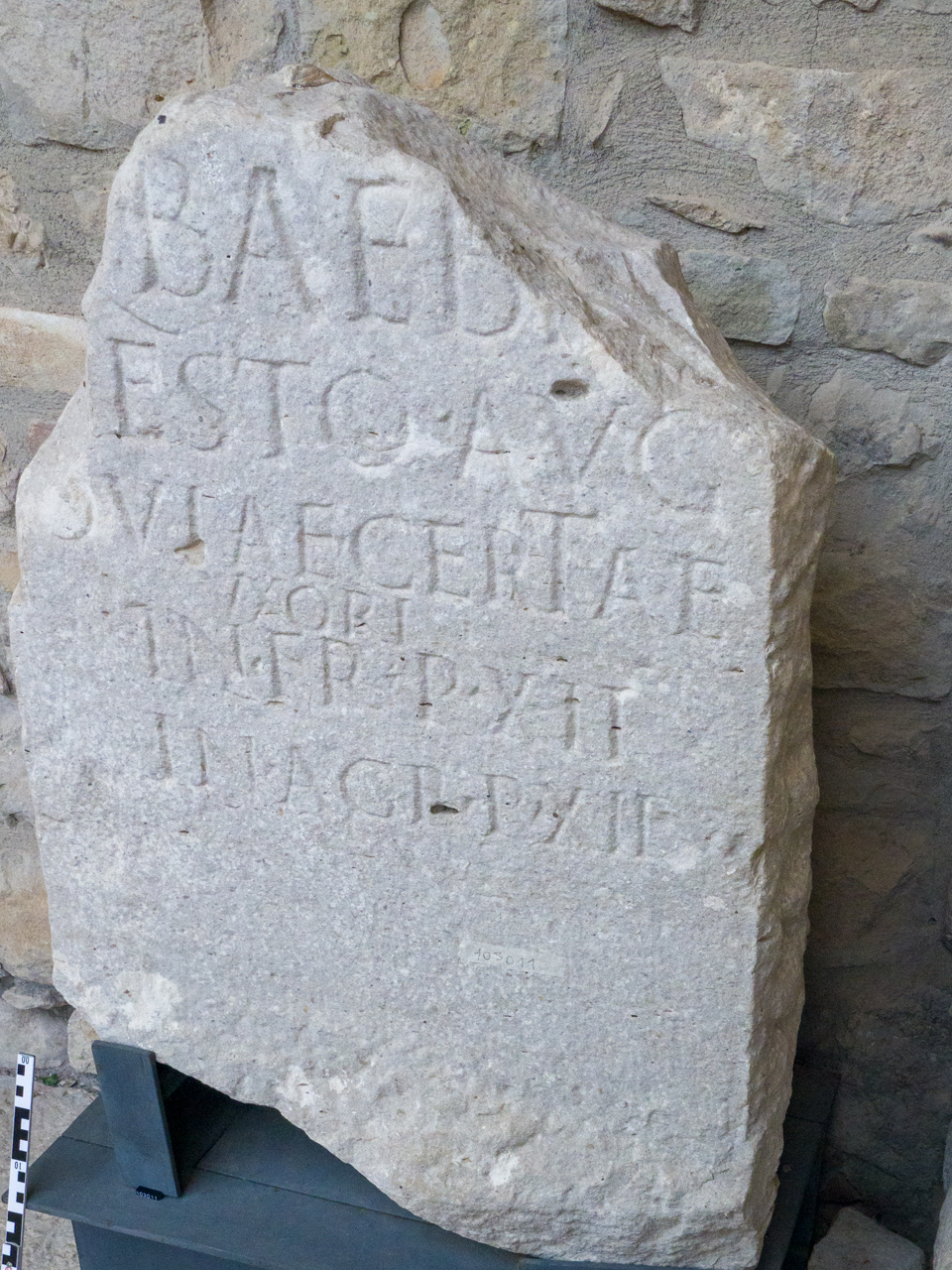 - ISCRIZIONI Q(uinto) Baebị[o] F̣esto Aug(ustali), Oviae Certae `uxori´. In fr(onte) p(edes) XII, in agro p(edes) XII - maiuscolo - a incisione - latino