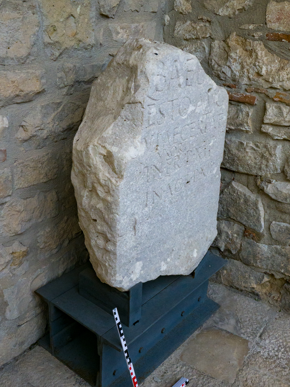 Stele centinata iscritta sulla faccia anteriore. I caratteri sono di grandezza decrescente
