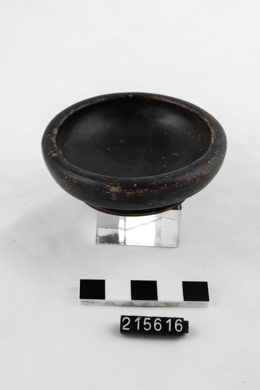 Coppetta a vernice nera con orlo rientrante, vasca a profilo emisferico e basso piede ad anello