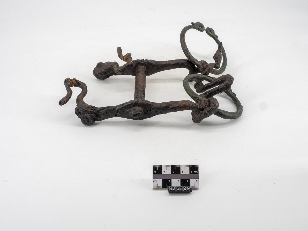 Morso equino in ferro, ben conservato. alle estremità delle guardie, motivo a testa di uccello con lungo becco
