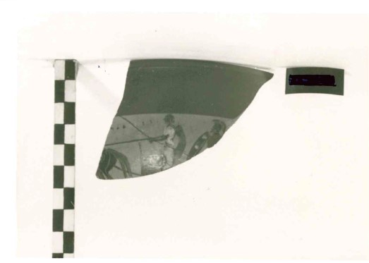 Frammento di una band-cup. Argilla rosso arancio compatta. L'orlo ha il bordo arrotondato. Una curva lievemente concava raccorda l'orlo alla parte della vasca che ha una curvatura pronunciata sulla parte bassa