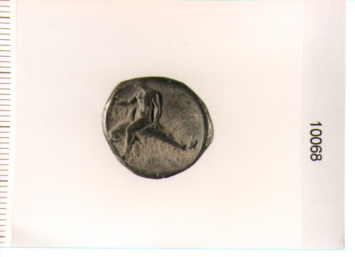 D/ CAVALIERE AL PASSO A D. CHE INCORONA IL CAVALLO, SOPRA E SOTTO, LEGENDA; R/ TARAS SU DELFINO A S., HA UN TRIPODE NELLA MANO D. TESA; SOTTO E A D., LEGENDA