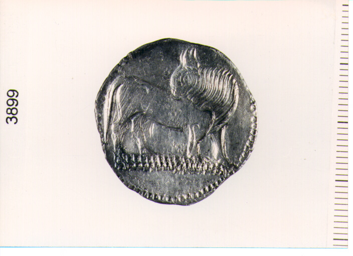 D/ TORO A S. RETROSPICIENTE SU LINEA DI ESERGO DI PERLINE; C.P.; IN ESERGO, LEGENDA RETROGRADA; R/ TORO A D. RETROSPICIENTE