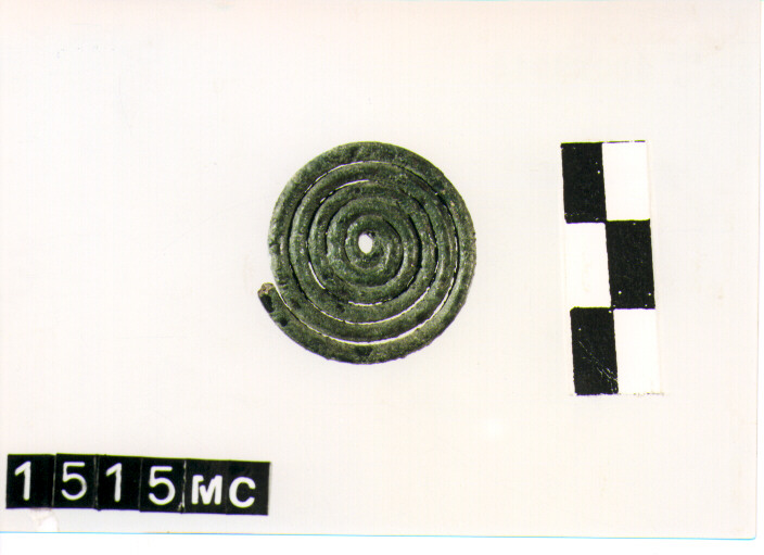 SPIRALE A SEI GIRI, IN FILO A SEZIONE CIRCOLARE, MUTILO AD UNA ESTREMITA', RITORTO E RIBASSATO ALL'ALTRA, SUPERFICIE LISCIA