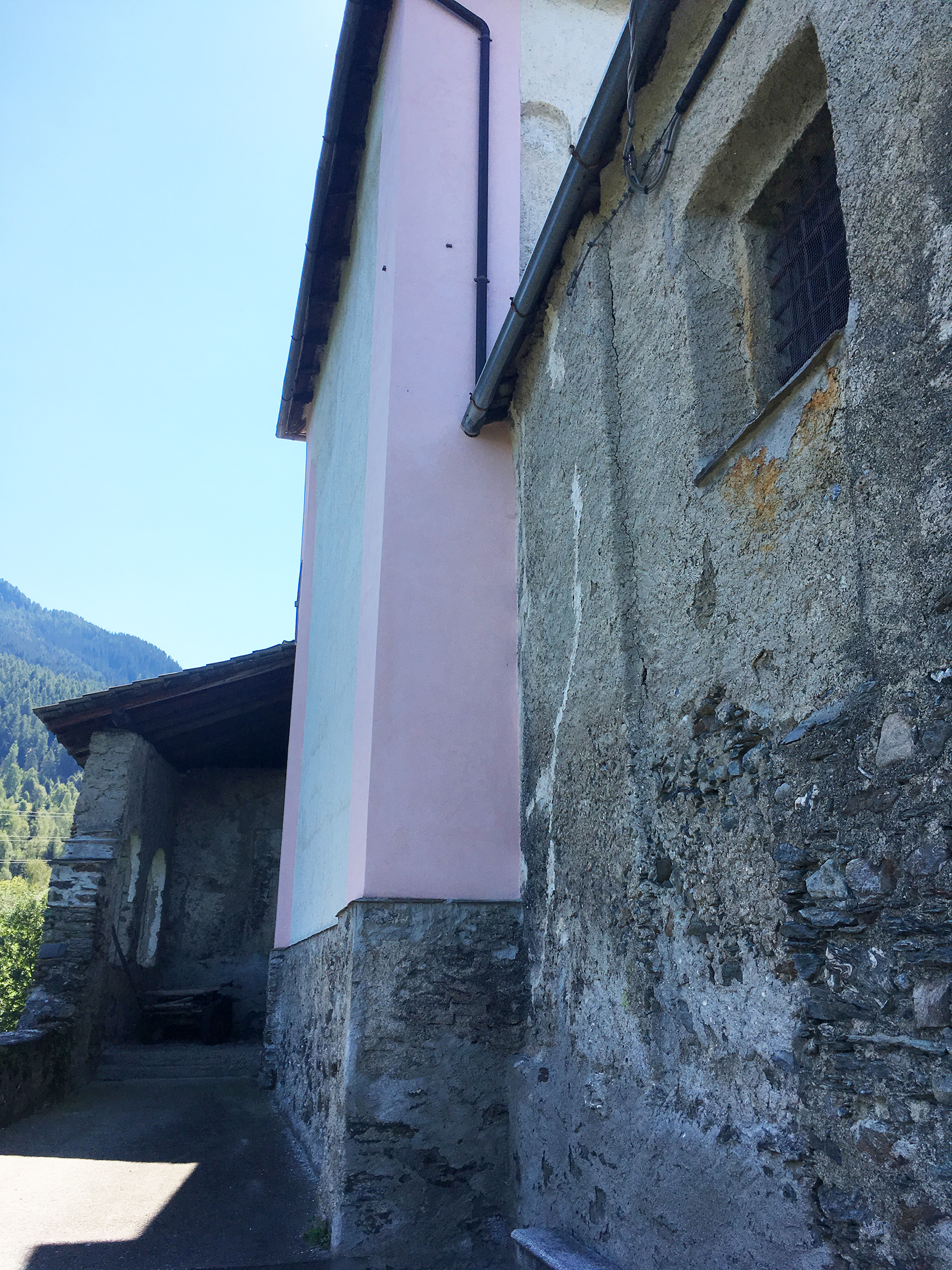 La chiesa è situata nel nucleo abitato posto a mezza costa del versante orobico della valle dell'Adda. Presenta una pianta rettangolare a navata unica con presbiterio, campanile inglobato nel fianco dx. Facciata divisa da lesene con portale in pietra. Muratura in pietra intonacata e interno a volta. Tetto in legno con copertura in lastre di pietra