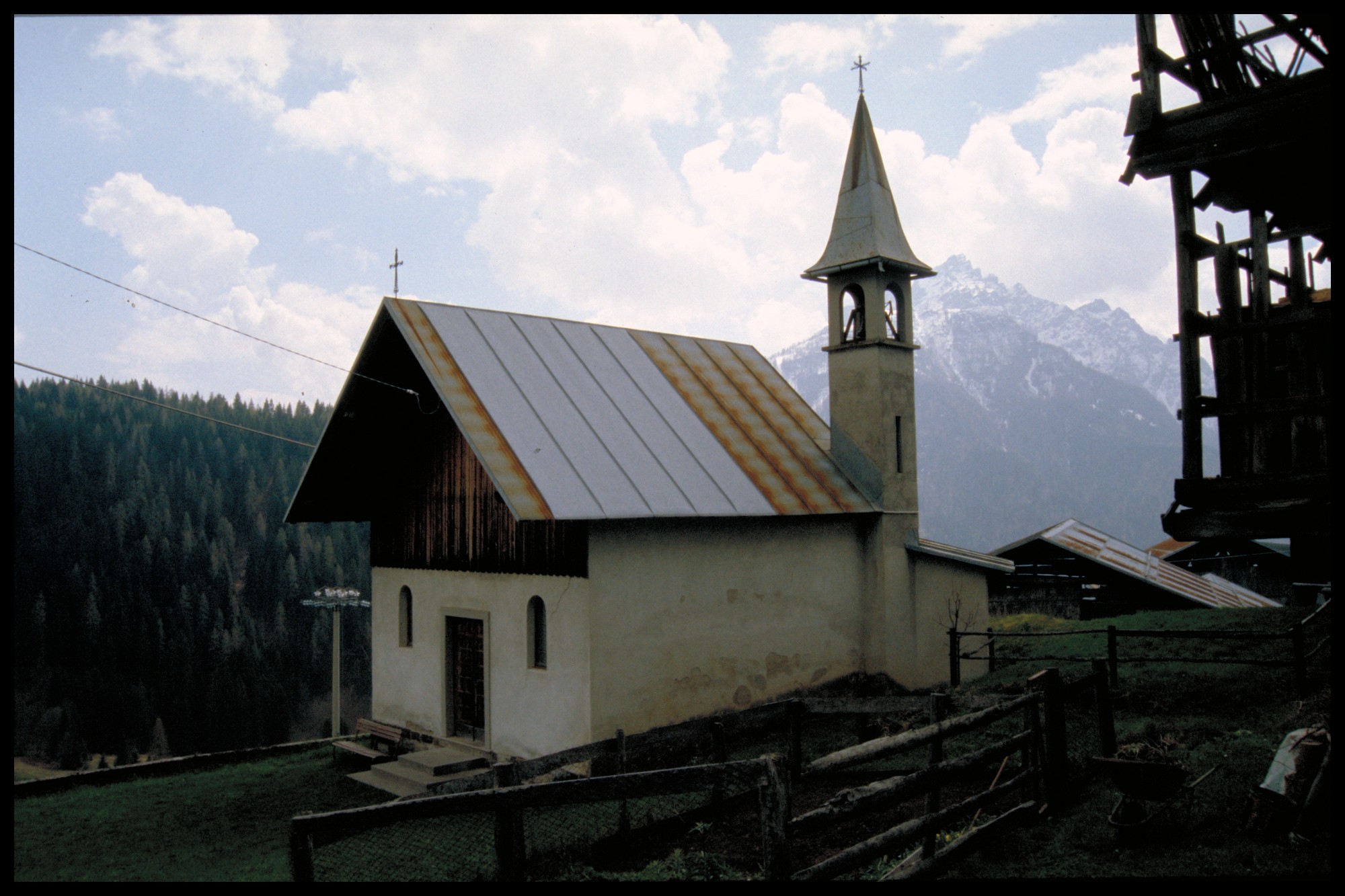 Struttura orizzontale in pietra, struttura verticale in pietra intonacata, tetto in legno a più falde con copertura in lamiera