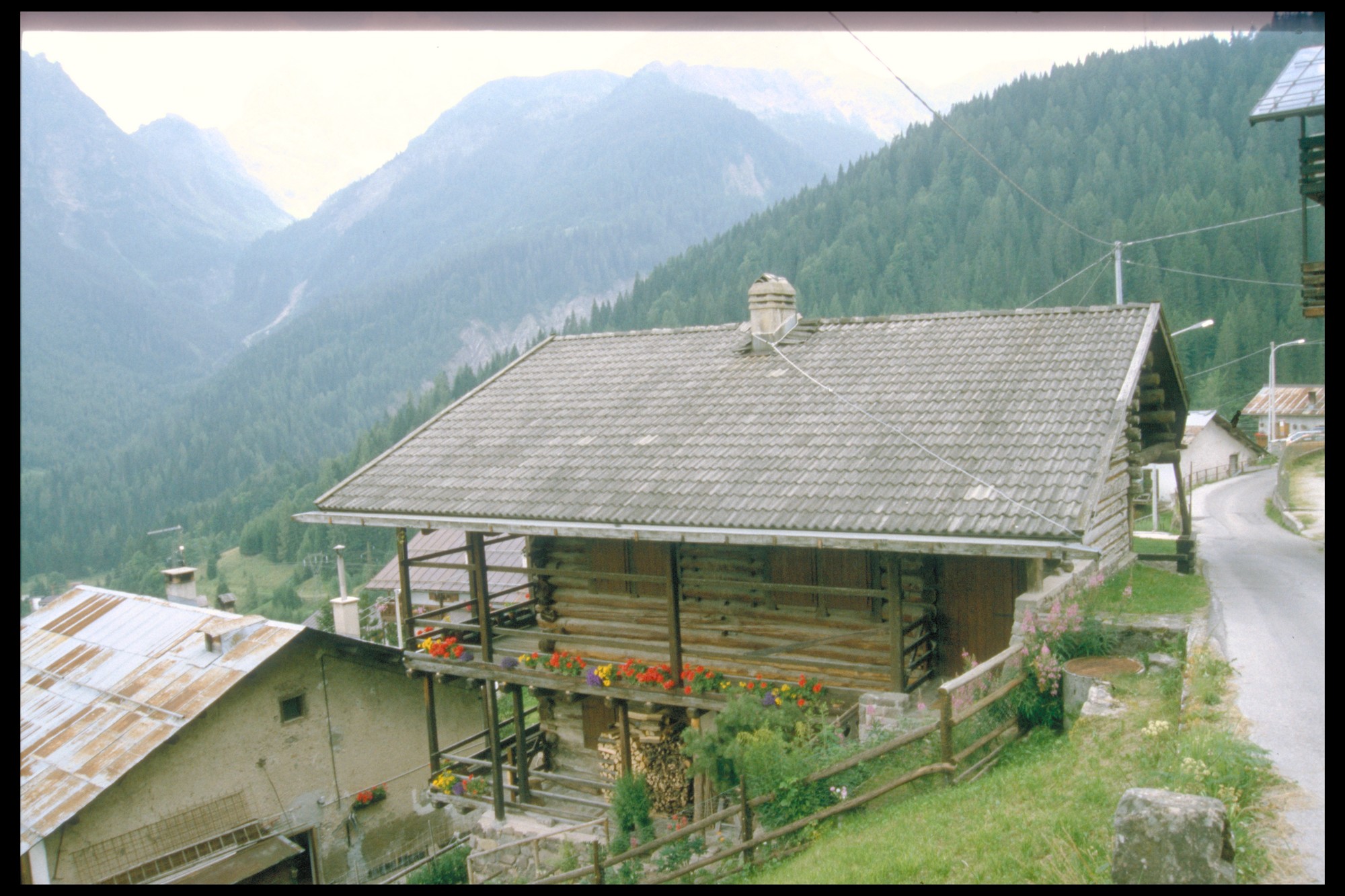 Struttura orizzontale in pietra e legno, struttura verticale in pietra e legno, tetto in legno a più falde con copertura in lamiera
