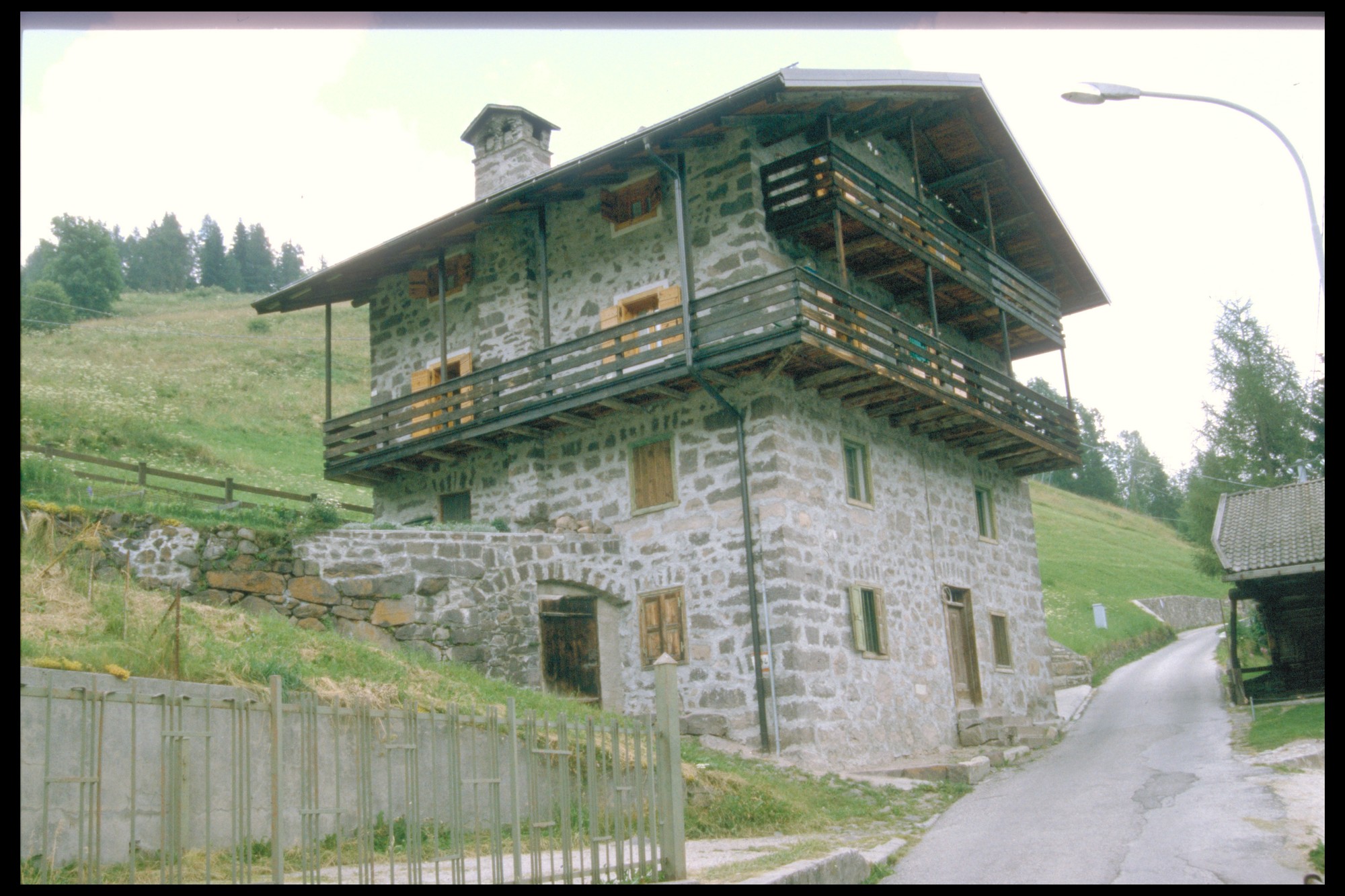 Struttura orizzontale in pietra, struttura verticale in pietra, tetto in legno a più falde con copertura in lamiera