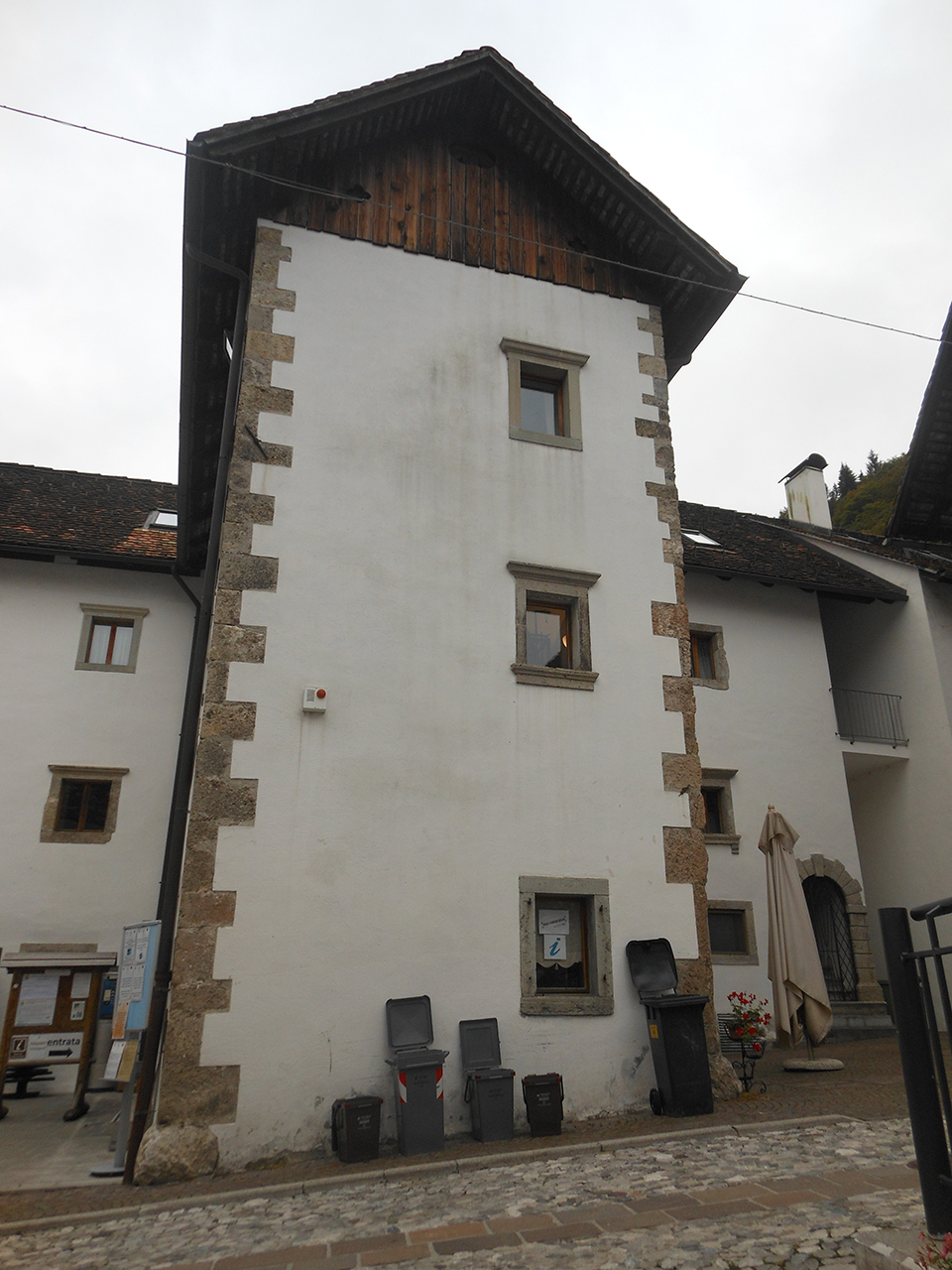 Edificio di pianta rettangolare, allungata, presenta la tipologia tradizionale della casa carnica con portico al piano terra e loggiato superiore. Le murature sono intonacate e il portico è formato da archi in pietra su colonne di semplice fattura. Dopo gli interventi di restauro gli archi della loggia sono stati tamponati con serramenti in legno. In tempi recenti l'immobile è stato restaurato e adattato a sede museale, ufficio turistico