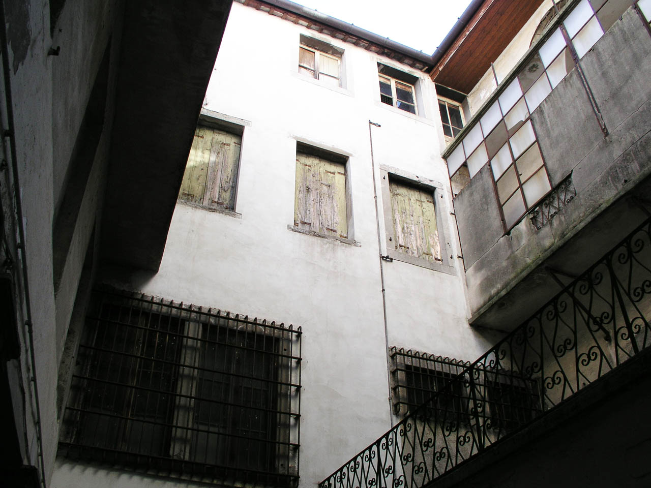 L'edificio, in muratura mista con la facciata principale intonacata e restaurata nel corso del secolo scorso, è posto all'inizio di Via Paolo Sarpi e si affaccia solo di scorcio su Piazza Matteotti. Il piano terra verso la piazza è caratterizzato da un porticato sorretto da colonne a base tonda. Il prospetto retrostante, più articolato, si affaccia su una piccola corte che poi immette su Corte Giacomelli, un piccolo vicolo che porta in Via Zanon