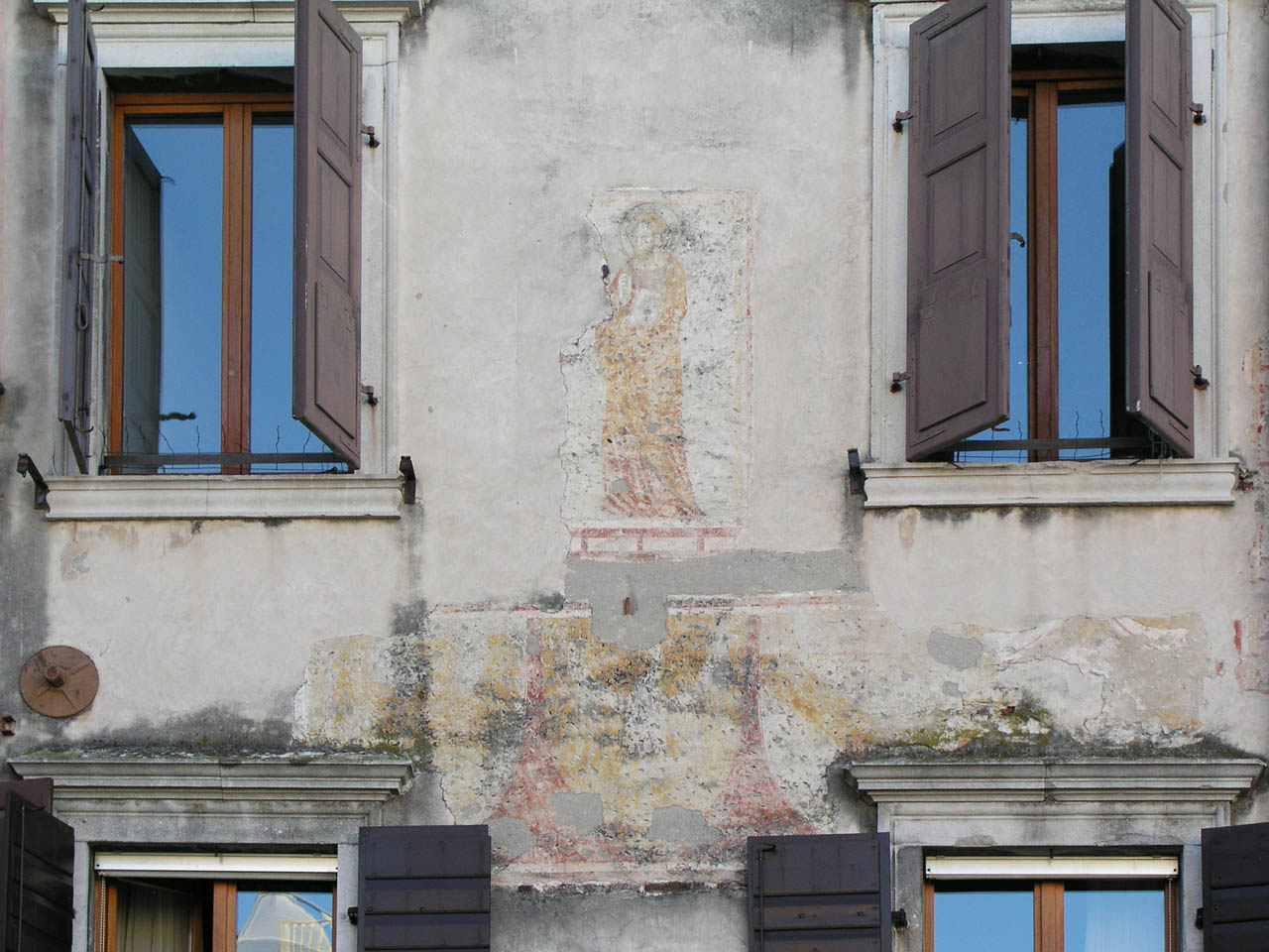 L'immobile oggi identificato con la particella catastale 234, in origine corrispondeva ai civici 814, 815, 816, 817 (vedi pianta ottocentesca del Lavagnolo contenuta nel testo di della Porta) le cui vicende si sono in parte incrociate durante le compravendite susseguitesi negli anni. L'edificio dalla pianta regolare, si presenta complesso nei prospetti, in cui sono visibili i diversi elementi che lo compongono. La parte a sinistra, priva di affreschi, è caratterizzata da un bassorilievo in pietra con lo stemma della civetta della famiglia Bonecco e sul terzo pilastro, all'altezza del capitello, da un piccolo stemma in pietra con l'arma della famiglia Savorgnan della Bandiera. Proseguendo appare l'affresco di S. Bartolomeo con stemmi sottostanti risalente al XIV secolo. Più a destra sono visibili gli affreschi che sono un tutt'uno con il vicino fabbricato (scheda 8001), ma di fatto i due immobili hanno solo il terrazzino in comune, in cui sono rappresentati motivi a losanga policromi