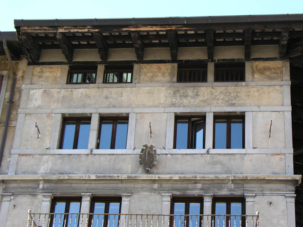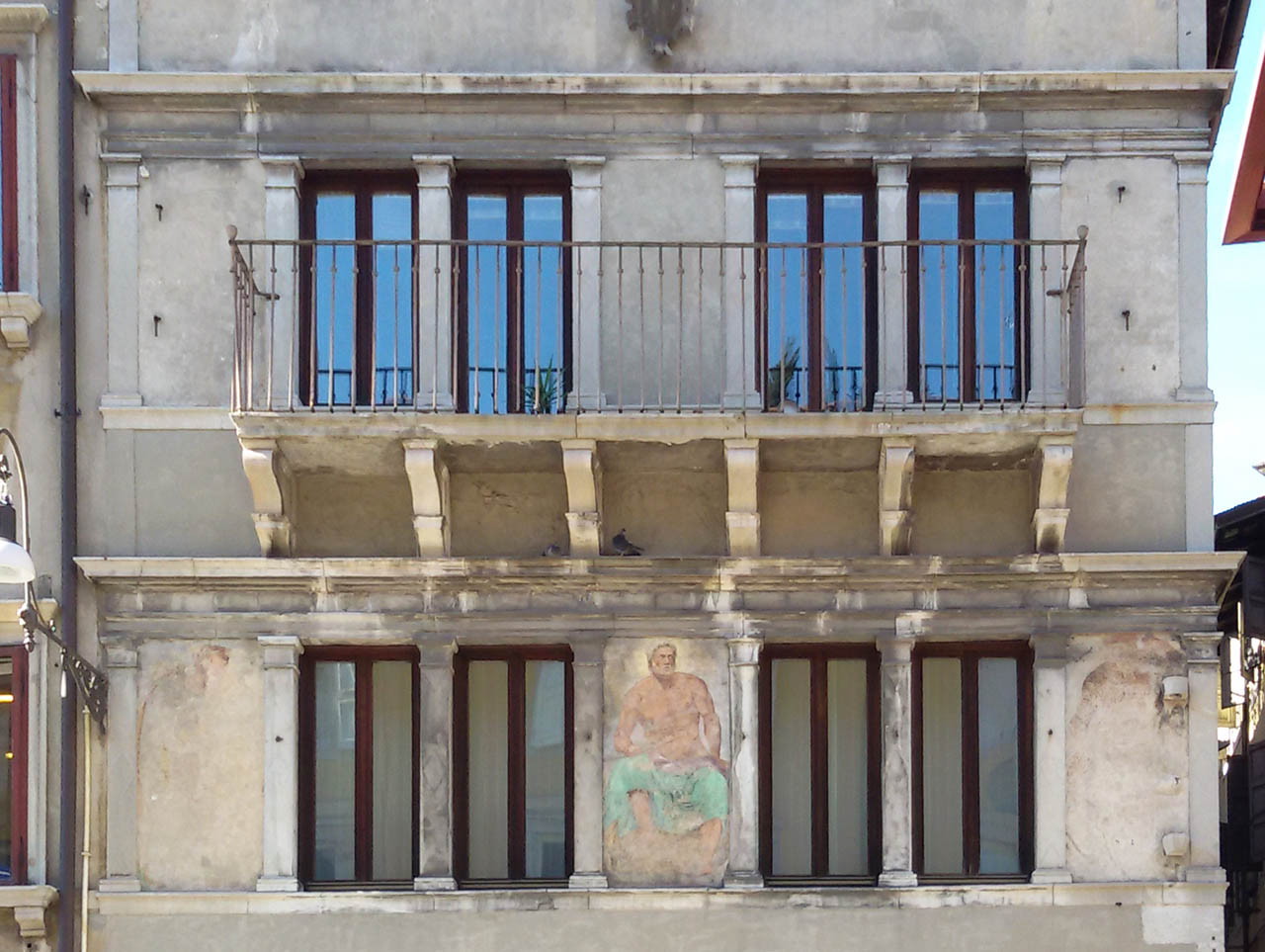 Casa realizzata all'angolo tra Via Mercato Vecchio e Vicolo Pulesi, con portico al piano terra sostenuto da tre pilastri a base quadrata e scandito dalle vetrine di un'attività commerciale. Si tratta di un edificio dal carattere rinascimentale, non pretenzioso, sviluppato in altezza (cinque piani); il prospetto principale presenta finestre binate, al secondo piano un terrazzino sostenuto da sei mensole, accentuate cornici marcapiano, un appropriato utilizzo della pietra nei riquadri delle finestre. Esternamente è stato affrescato dal pittore udinese Giovanni Battista Grassi. Su Vicolo Pulesi il prospetto si presenta semplice e scandito solamente da finestre rettangolari prive di decorazioni