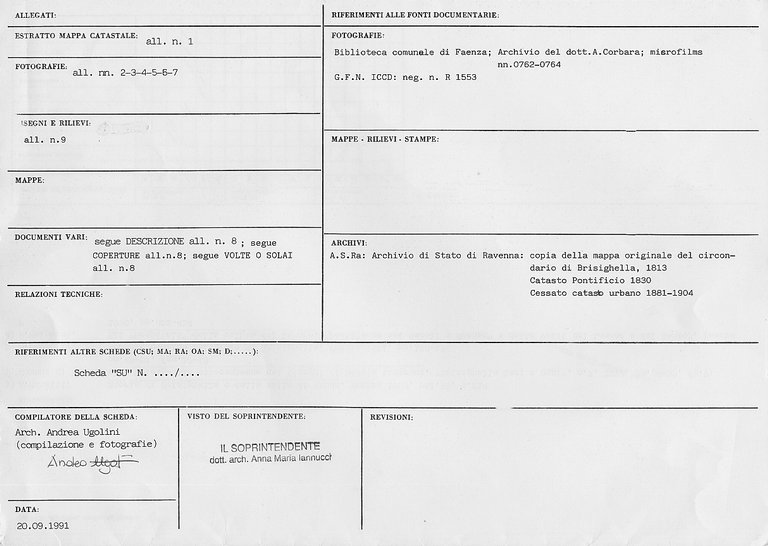 - ENTE SCHEDATORE Soprintendenza per i Beni Architettonici e Paesaggistici per le province di Ravenna Ferrara Forli'-Cesena e Rimini