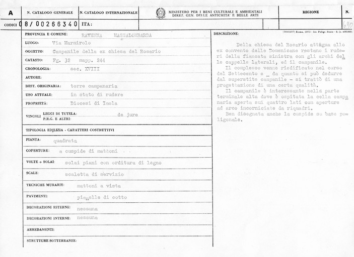 - ENTE SCHEDATORE Soprintendenza per i Beni Architettonici e Paesaggistici per le province di Ravenna Ferrara Forli'-Cesena e Rimini