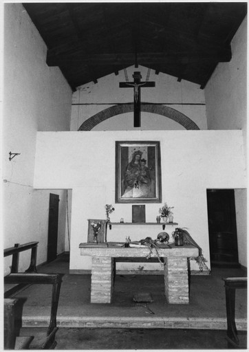 La costruzione, di modeste dimensioni, è a base rettangolare monocellulare: le pareti sono interamente intonacate ad eccezione di un arco in mattoni a tutto sesto di notevoli dimensioni, posto dietro all'altare, lasciato "a faccia vista": un diaframma, che include l'affresco della Madonna del Zotto, (costituito da un muro, che si eleva sino ad una certa altezza, ad una testa con due aperture laterali) separa virtualmente le zone per i fedeli dallo spazio adibito a sagrestia. La soffittatura è realizzata con tre capriate a semplice monaco sostenenti l'orditura secondaria creata con travi ed assito in legno. I prospetti sono di semplice fattura completamente privi di intonaco: frontalmente la porta d'accesso all'oratorio è sormontata da un ampio finestrone, con sguanci interni, mentre ai lati appaiono due piccole finestre protette da inferriate maglie incrociate. Il prospetto sud, a giudicare dalla mancanza di chiavi tra l'arco ed il tamponamento, tradisce l'esigenza di un abside o mai edificata oppure demolita. Sullo spigolo sinistro si innalza un picco lo campanile a vela interamente in mattoni