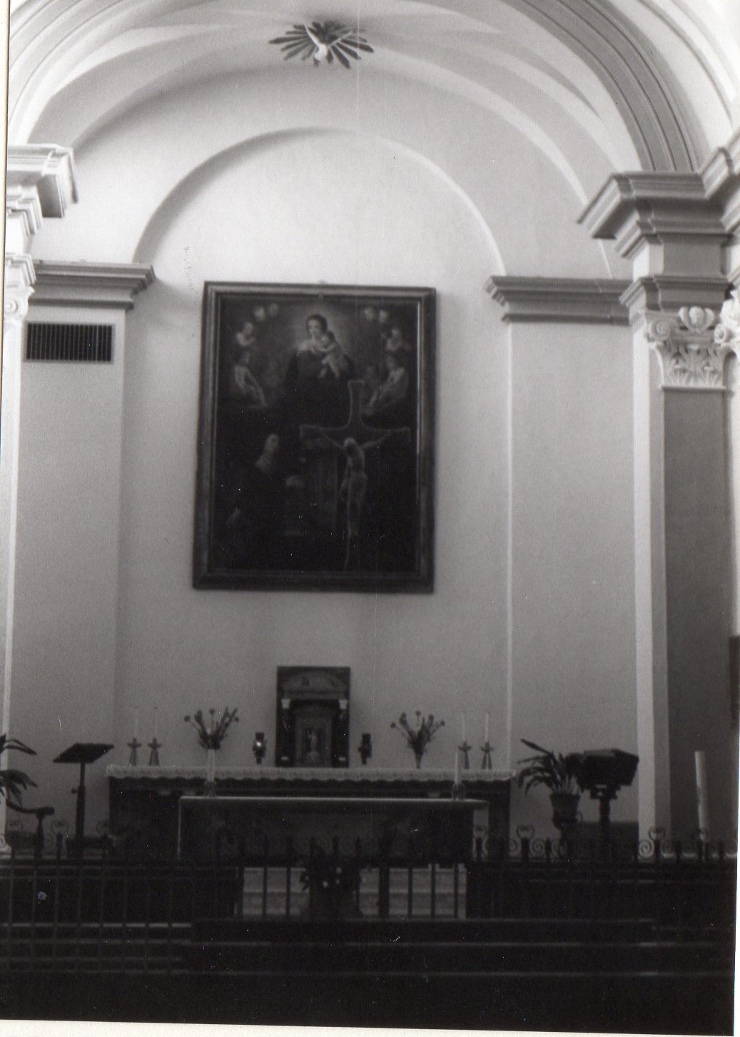 La chiesa costruita in tozzotti di pietra è parzialmente intonacata. E' interamente integrata nel Convento delle Benedettine. Sulla facciata è murata una lapide in pietra datata 1602. La chiesa è a pianta rettangolare ad unica navata con una cappella a destra. L'accesso avviene dal fianco. Il pavimento è di marmette di graniglia. La chiesa è di graziosa fattura, di ordine composito con capitelli, fregi e stucchi eleganti. All'altare maggiore c'è una tela con la Madonna e i Santi Francesco e Chiara di Carlo Leoni. Sul lato sinistro si trova un quadro raffigurante S. Bernardo. Nella cappella a destra si trova un organo di recente fattura. La cantoria è molto grande, è in muratura e chiusa da un vetro (oratorio delle Monache Benedettine di clausura dell'annesso Convento). Sulla cantoria si trova, in una cornice di stucco, l'iscrizione "PSALLITE DOMINO-PSALLI TE SAPIENTER". Il motivo di ripete sulla nicchia dell'altare con le parole "EGO VOS SEM PER CUSTODIAM". Due nicchie nei lati della chiesa sono attualmente vuote. Essa viene illuminata dall'alto dove si trovano quattro finestre sul lato sinistro e una su quello destro (altare tre sono murate)