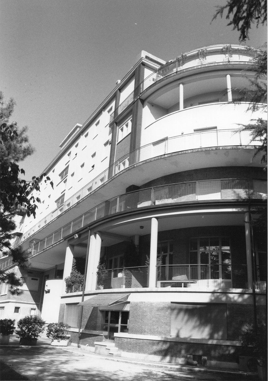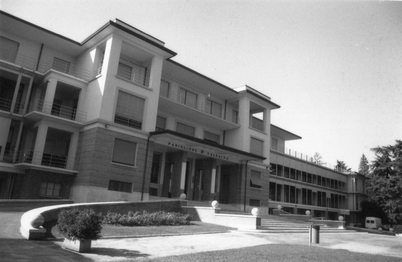 Il complesso sanatoriale di Vecchiazzano, sorto come antitubercolarario in una zona di campagna, mostra, dall'alto, una singolare planimetria complessiva a "stormo di aerei". Il grande complesso venne realizzato nel giro di soli sette anni grazie alla adozione di un sistema strutturale " a telaio" che segnò uno dei primi esempi a Forlì della conquista dell'industrializzazione moderna dell'edilizia