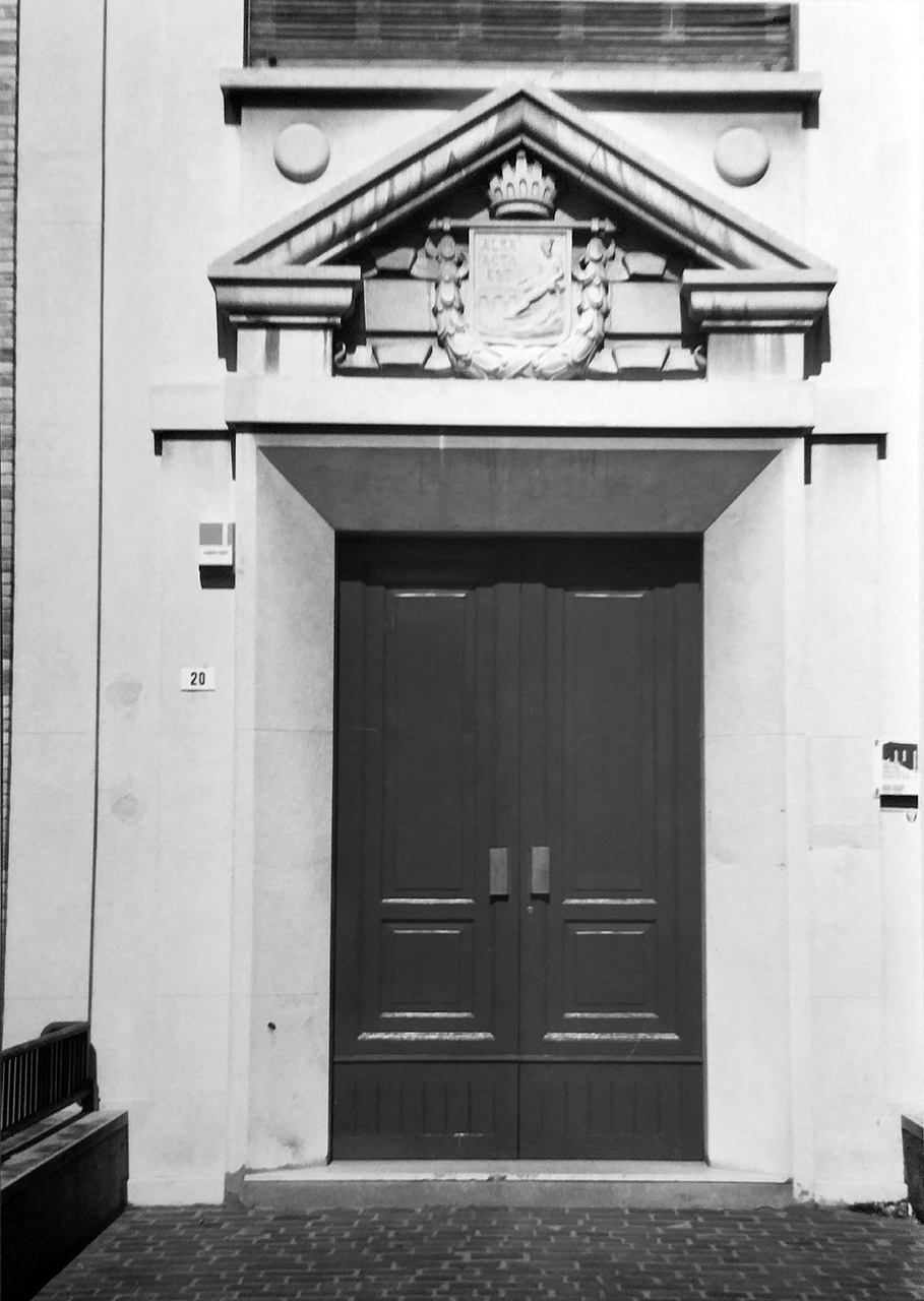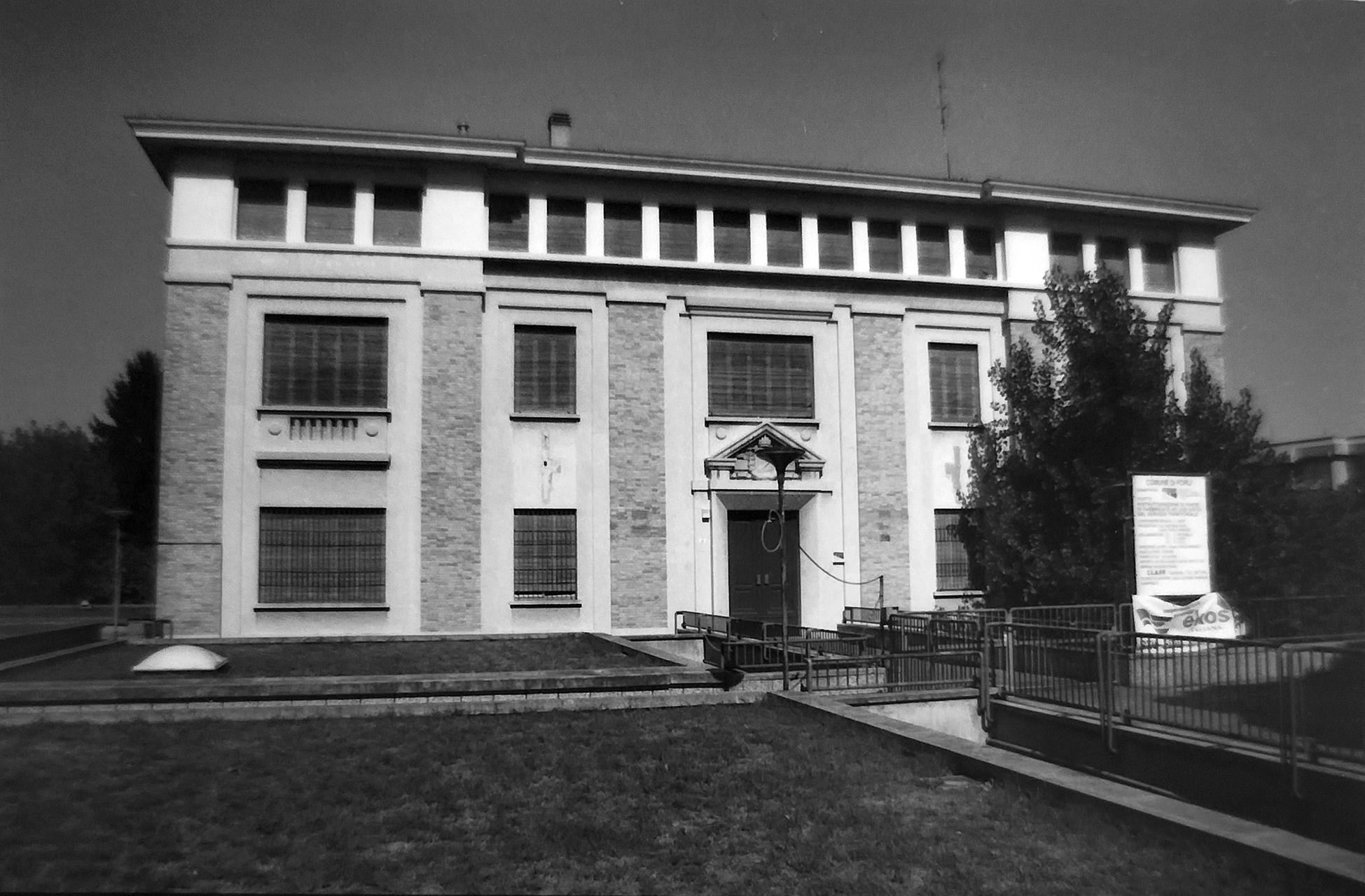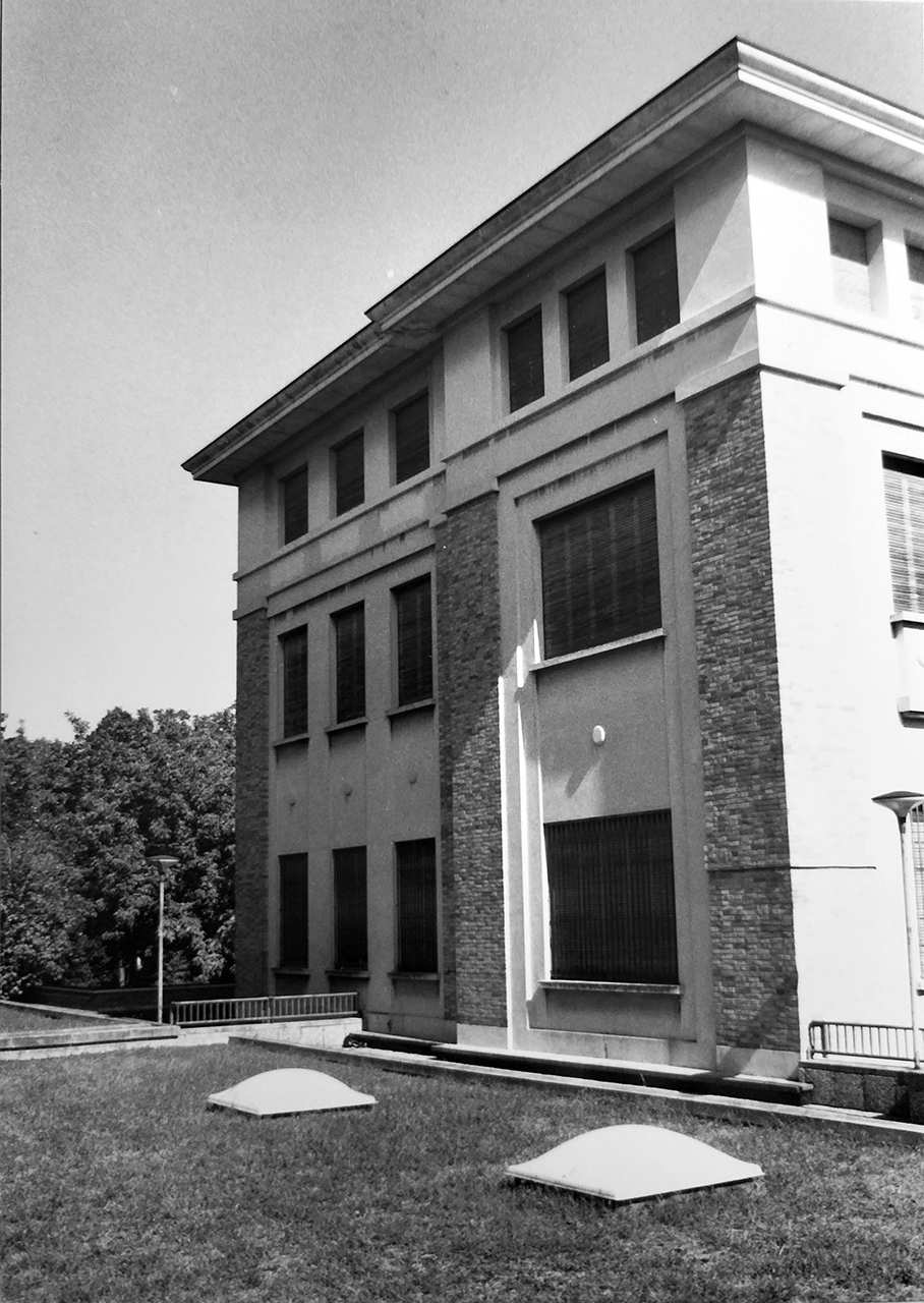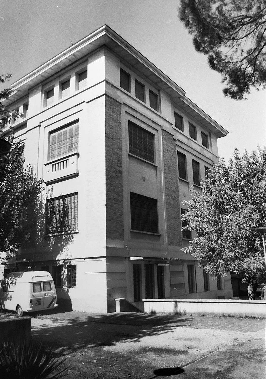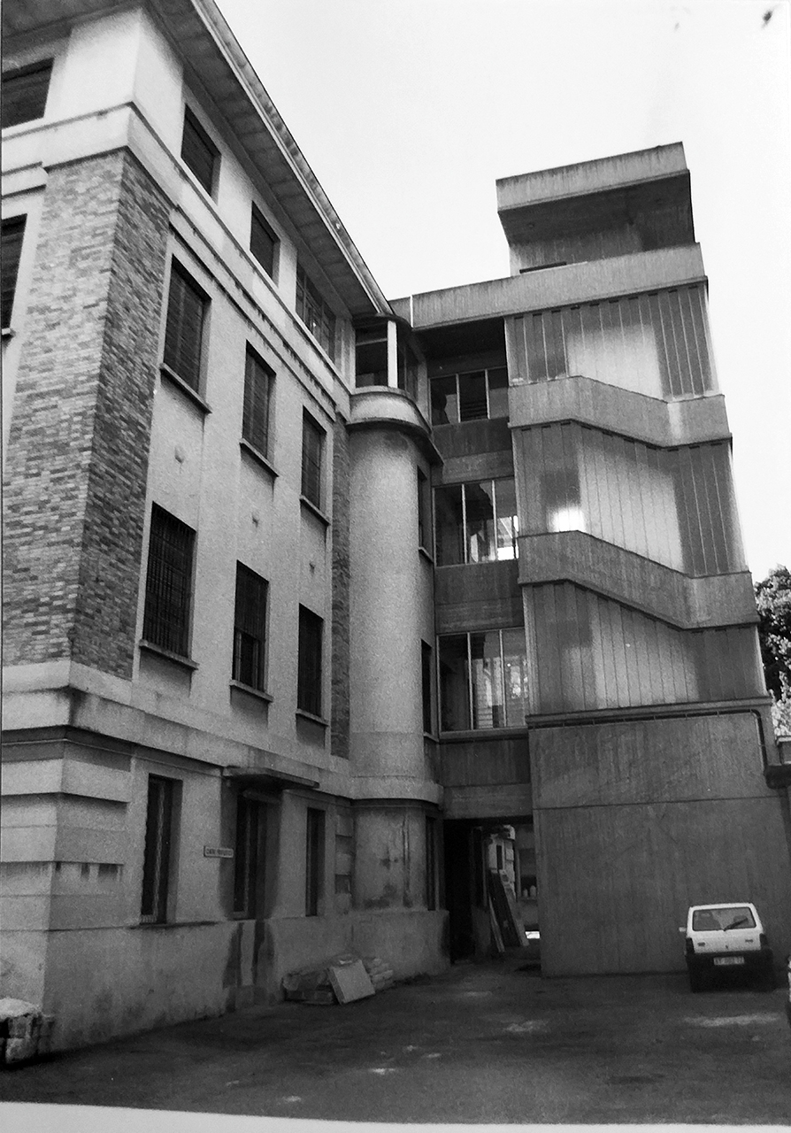 In questo grande lotto aperto in una grande zona allora esterna e poco edificata venne realizzato, a partire dal 1935, questo nuovo edificio dalla forma rettangolare trasversale mossa unicamente, in origine, dal leggero arretramento del corpo centrale sul fronte principale e, posteriormente, da due torrette leggermente aggettanti dei corpi scala. La struttura adottata è quella mista con murature portanti