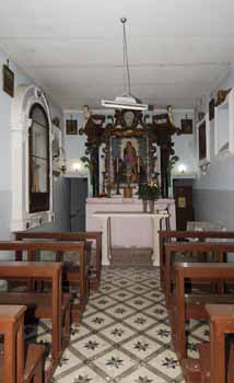A pianta rettangolare ad andamento longitudinale presenta una navata unica coperta con controsoffitto piano, realizzato con putrelle in ferro e tavelloni. L’abside poligonale, in mattoni facciavista, è utilizzata come sagrestia ed è accessibile direttamente dall’interno tramite due varchi ricavati nel muro retrostante l’altare. Il prospetto principale è costituito da un corpo unico simmetrico in muratura portante in pietrame misto con finitura superficiale in intonaco bianco. Due alzate in pietra, della stessa dimensione del portale, permettono di raggiungere dall'esterno la quota di calpestio della chiesa. Presenta una seduta, interrotta dall'ingresso, in pietra su elementi di appoggio in mattoni. Il portale principale è riquadrato da un sistema in pietra di piedritti e architrave. In asse con esso è collocato un rosone e due finestre quadrate sono disposte specularmente ai lati. La chiesa presenta due falde inclinate con manto di copertura in coppi, mentre l’abside una copertura a padiglione con struttura a doppia orditura lignea. Il campanile in asse centrale al di sopra del colmo di copertura presenta un fornice con campana e culmina con due falde inclinate