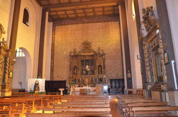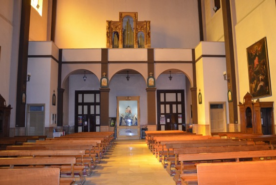Lo spazio interno è articolato in una navata unica, scandita da paraste in ritmo A-B-B-B-A e un transetto trasversale all'altezza del presbiterio ai cui bracci si accede attraverso fornici di passaggio aperti nella muratura. Un endonartece sormontato da cantoria costituisce lo spazio d'ingresso. All'interno delle campate si aprono finestre con archivolto a tutto sesto. La pavimentazione lungo la navata si compone di lastre di marmo con sfumature rosa e avorio ordite a giunto alternato con inserite due fasce continue laterali in marmo di tonalità marrone. Il tetto a doppia falda presenta una struttura portante in capriate di legno e manto di copertura in coppi. La navata unica è coperta con soffitto piano cassettonato. Le strutture di fondazione sono realizzate con un sistema di archi e volte che ritmano un sistema di piedritti e volte contigue a botte disposte ortogonalmente al lato lungo della chiesa e poggianti su fondazioni che trasferiscono i carichi al terreno scosceso sottostante. La facciata principale è ripartita verticalmente in due quadranti per mezzo di paraste di ordine gigante in conci squadrati di pietra di cui una centrale e due laterali. Una porzione del prospetto presenta conci di pietra squadrati faccia a vista e superiormente inserti di laterizi e pietrame misto; l'altra porzione presenta finitura superficiale in intonaco colorato. Il coronamento è piano e segue il profilo della vela che si eleva al di sopra della cornice continua sulle paraste e che risulta interrotta dal corpo di uno dei campanili. Tre gradini in pietra permettono di accedere alla quota della chiesa. Basamento a spessore in pietra con bordo superiore arrotondato. Il portale principale è riquadrato da una cornice inscritta in un sistema di doppie paraste su cui poggia il timpano con le sime spezzate e fastigio centrale recante una croce. Il portale secondario è costituito da due paraste scanalate su cui poggia l'architrave su cui è scolpito il monogramma bernardiniano, sovrastato da lunetta con altorilievo raffigurante l'Annunciazione. In asse con il portale, sono collocati una finestra cieca in laterizio con archivolto a sesto ribassato e un oculo cieco recante un altorilievo e da due monofore con arco a sesto rialzato. Il campanile laterizio, a ridosso della facciata principale su di un lato, è una vela articolata su tre livelli individuati da tre diverse geometrie con larghezze digradanti nello sviluppo verticale, con l'oculo contenente l'orologio e un fornice con campane. In posizione arretrata in controfacciata si attesta la torre campanaria laterizia a pianta quadrata con paraste angolari di ordine gigante. La guglia terminale è una piramide a base quadrata. Nella chiesa sono quattro altari barocchi monumentali, in legno dipinto e dorato, realizzati nel corso del XVII secolo. L’altare della Resurrezione, nella cappella di sinistra, conserva cinque busti-reliquiari di sante. Nella cantoria sopra la porta d’ingresso si trova un organo napoletano impiantato nel 1636, che risulterebbe l’organo più antico finora conosciuto in Abruzzo. Sempre al XVII secolo risalirebbe l’acquasantiera nei pressi dell’altare
