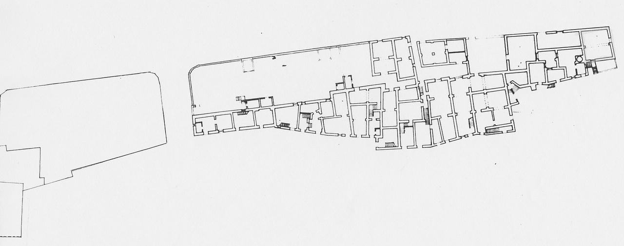 La fabbrica, dotata di pianta regolare, quadrata, si sviluppa su due piani. I due piani sono scanditi da diverse tecniche murarie. Il piano terra è in pietrame calcareo a filari incerti, quello superiore è in conci rozzamente squadrati a filari ordinati