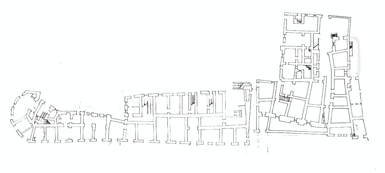 L'edificio si sviluppa su due e tre livelli con andamento gradonato. La pianta ha impianto regolare ed è di forma rettangolare. La muratura, intonacata, è in pietrame montato a sacco. La copertura è a doppio spiovente con manto in tegole alla romana