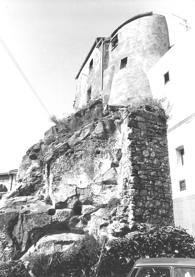 La struttura in pianta poligonale si eleva su tre livelli di piano; la muratura è in pietra intonacata, la copertura è a falde con manto di coppi in laterizio