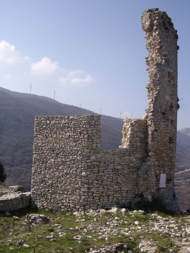 Dell’antico castello restano solo poche tracce murarie di un probabile recinto, appena leggibili, consentono solo ipotesi sull’andamento delle cortine esterne del castello. Delle due torri superstiti quella più alta presenta un evidente rinforzo del muro primitivo con una camicia di rinfianco