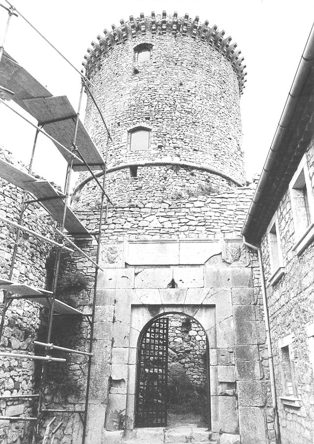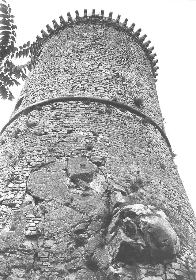 A base tronco-conica la torre è costituita da tra vani sovrapposti, di cui quello inferiore, circolare, i rimanenti a pianta ottagonale. L'unica volta originale all'ultimo piano realizzata in grossi blocchi di pietra. Recenti il solaio in legno del piano terra e la volta ottagonale del primo piano. Unico ingresso alla torre una stretta apertura. Paramento esterno in pietrame con beccatelli di epoca aragonese. La torre continuamente rimaneggiata presenta finestre di origine dubbia