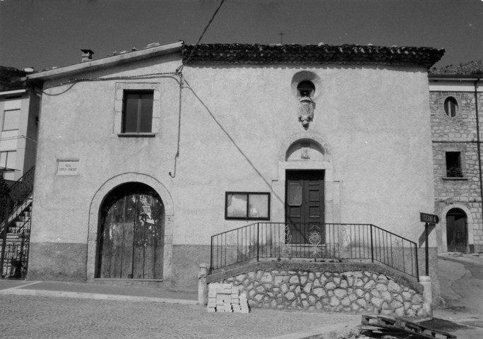 La cappella è disposta secondo un orientamento Est-Ovest e presenta un impianto longitudinale ad aula. L’interno è molto semplice e la zona presbiteriale è leggermente rialzata rispetto al piano di calpestio. La facciata si confonde con quelle dei palazzi vicini tanto che si ritrovano gli stessi elementi architettonici. al centro della facciata è posizionato un semplice portale contornato da pietra squadrata e terminante con un arco chiuso. In asse è presente lo stemma della famiglia Zona a cui apparteneva la cappella. Gli ambienti destinati all’esercizio pubblico del culto sono nella part. A e occupano parzialmente anche la part. 49, dove è ubicata anche una unità abitativa