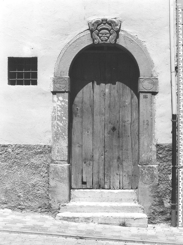 Edificio a pianta rettangolare, di tre piani, con muratura in pietra intonacata; orizzontamenti in c.a.; portale con arco e stipiti in pietra lavorata; copertura a due falde, con manto in coppi