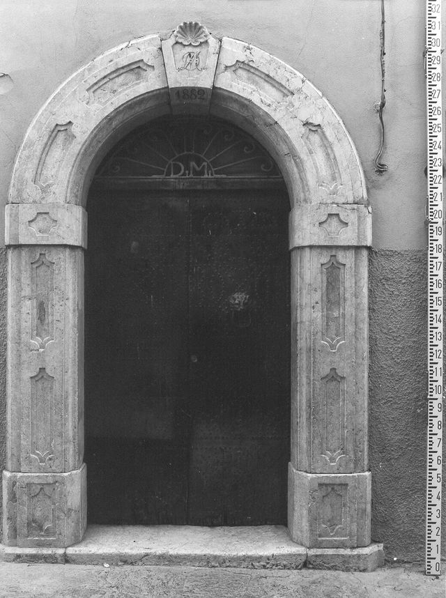 Edificio a pianta rettangolare, di due piani, con muratura in pietra intonacata; portale con arco e stipiti in pietra calcarea; orizzontamenti in ferro; copertura a due falde, con manto in coppi. Nell'immobile tre unità abitative ed un deposito