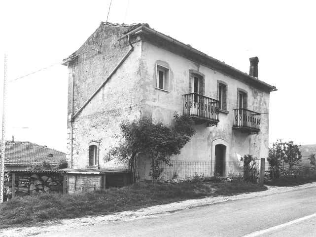 Edificio a piantarettangolare di tre piani in muratura di pietra intonacata; ingresso con arco e stipiti in pietra lavorata; balconi con ringhiere di ferro; orizzontamenti in ferro; cornicione a romanella; copertura a due falde con manto in coppi