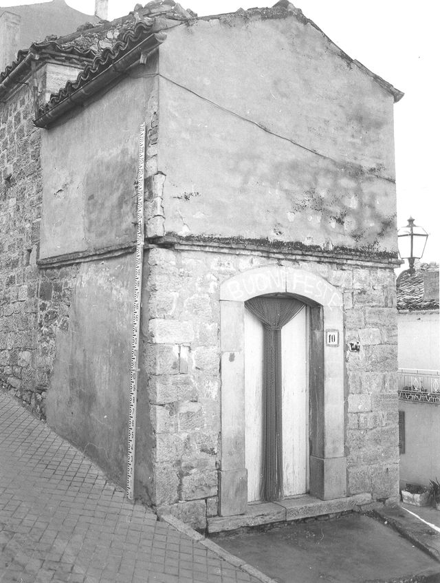 Edificio a pianta trapezoidale in muratura portante in pietra locale a faccia vista, alcune integrazioni in laterizio, con copertura a due falde e manto in coppi. Nell'immobile oltre l'unità abitativa un deposito