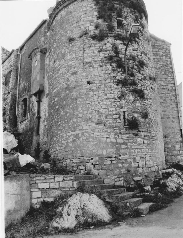 L’edificio in pianta poligonale ingloba un volume che originariamente era una torre, si sviluppa su tre livelli di piano; la muratura è in pietra a corsi irregolari parzialmente intonacata. La copertura del corpo principale è a due falde con coppi di laterizio, mentre la copertura della torre è a terrazzo