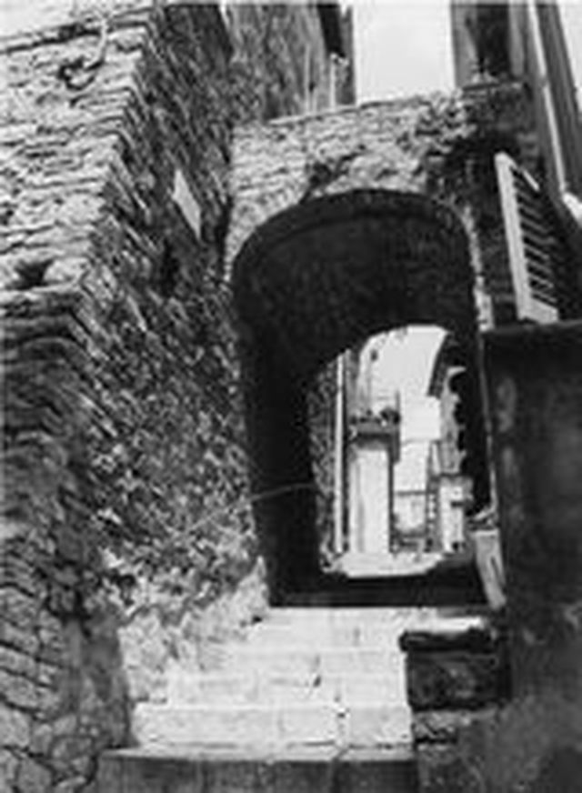 La porta urbica, caratterizzata da un passaggio a scalinata, voltata a botte ribassata, è inglobata in un edificio a pianta trapezoidale in muratura portante in pietrame a corsi irregolari di tre piani, con solai piani, coperto da tetto a falde con manto in coppi. L'edificio presenta un'abitazione e due locali rimesse