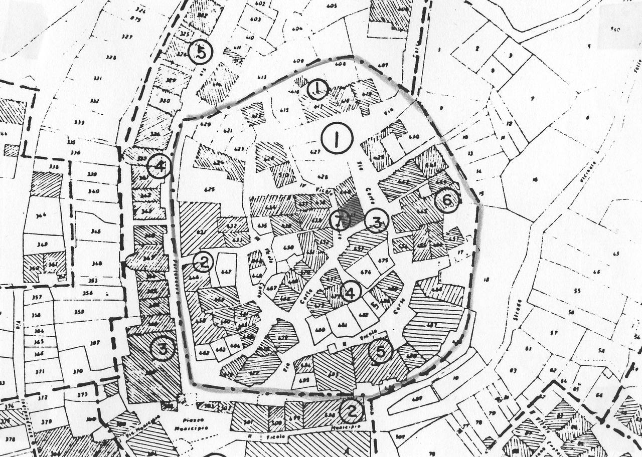 Edificio in linea a pianta trapezoidale, con due livelli in muratura intonacata, in conci di pietra a vista al piano terra, con alcuni locali voltati a botte, altri con solaio piano in ferro e laterizio; tetto a capanna con struttura lignea e manto in coppi. Sul fronte Sud portale ad arco a tutto sesto con la chiave che riporta rilievo raffigurante albero con corona con iniziali e data incisa. Sul fronte Ovest la scala d'accesso esterna che smonta su una loggetta con davanzale e pilastro in lastra e blocchi di pietra squadrata