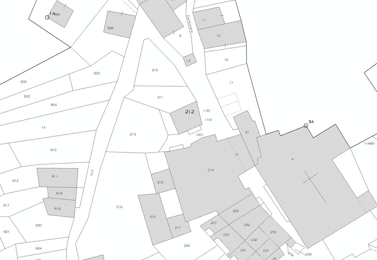 L'edificio presenta una planimetria di forma trapezoidale con due ingressi autonomi, consentiti dalla diversa quota della strada. Le facciate rivelano elementi ottocenteschi (cornicione)