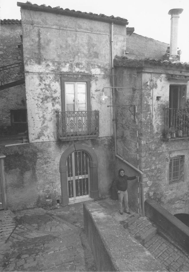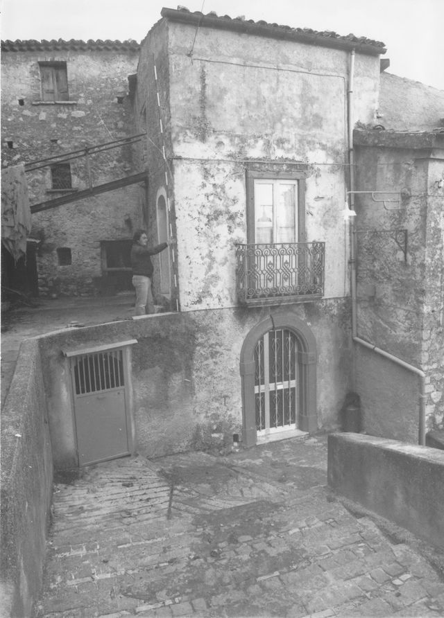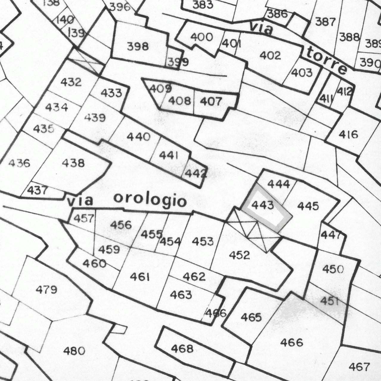 L’edificio è in pianta di forma pressoché rettangolare e si sviluppa su tre livelli di piano i primi due sono disimpegnati da ingressi autonomi consentiti dalla diversità delle quote, il terzo è disimpegnato da una passerella in ferro, con leggera pendenza, che parte dalla rampa di una strada minore che collega Via dell’Orologio. Le facciate presentano caratteri eterogenei: quella su Via dell’Orologio rivela caratteri ottocenteschi un portone con cornice in pietra ed arco a tutto sesto, in asse con il quale, al piano superiore, insiste un balcone rettangolare con sporto in pietra e ringhiera in ferro; la seconda facciata, rivolta verso una corte aperta, si rivela più povera di elementi architettonici e presenta due portoni diversi tra loro ed al piano superiore una porta rettangolare alla quale si giunge dalla passerella. La muratura portante è in pietrame del tipo a sacco intonacata e la copertura è del tipo a falde