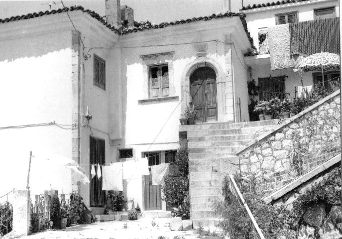 Edificio di quattro livelli, con pianta ad "L", in muratura continua intonacata di pietrame. Solai in ferro e laterizio, copertura a falde, il corpo principale con tetto a padiglione, con manto in coppi. Le facciate Nord-Ovest conservano ancora qualche carattere originario leggibile nel portale scolpito e nel balcone ad Ovest, nella serie di finestre con cornici in blocchi di pietra squadrata a Nord. Il fronte su via Municipio, maggiormente rimaneggiato, presenta il portale con incisa la data 18(..), a cui si accede mediante una ripida scala che si inniesta sulla scalinata della chiesa parrocchiale