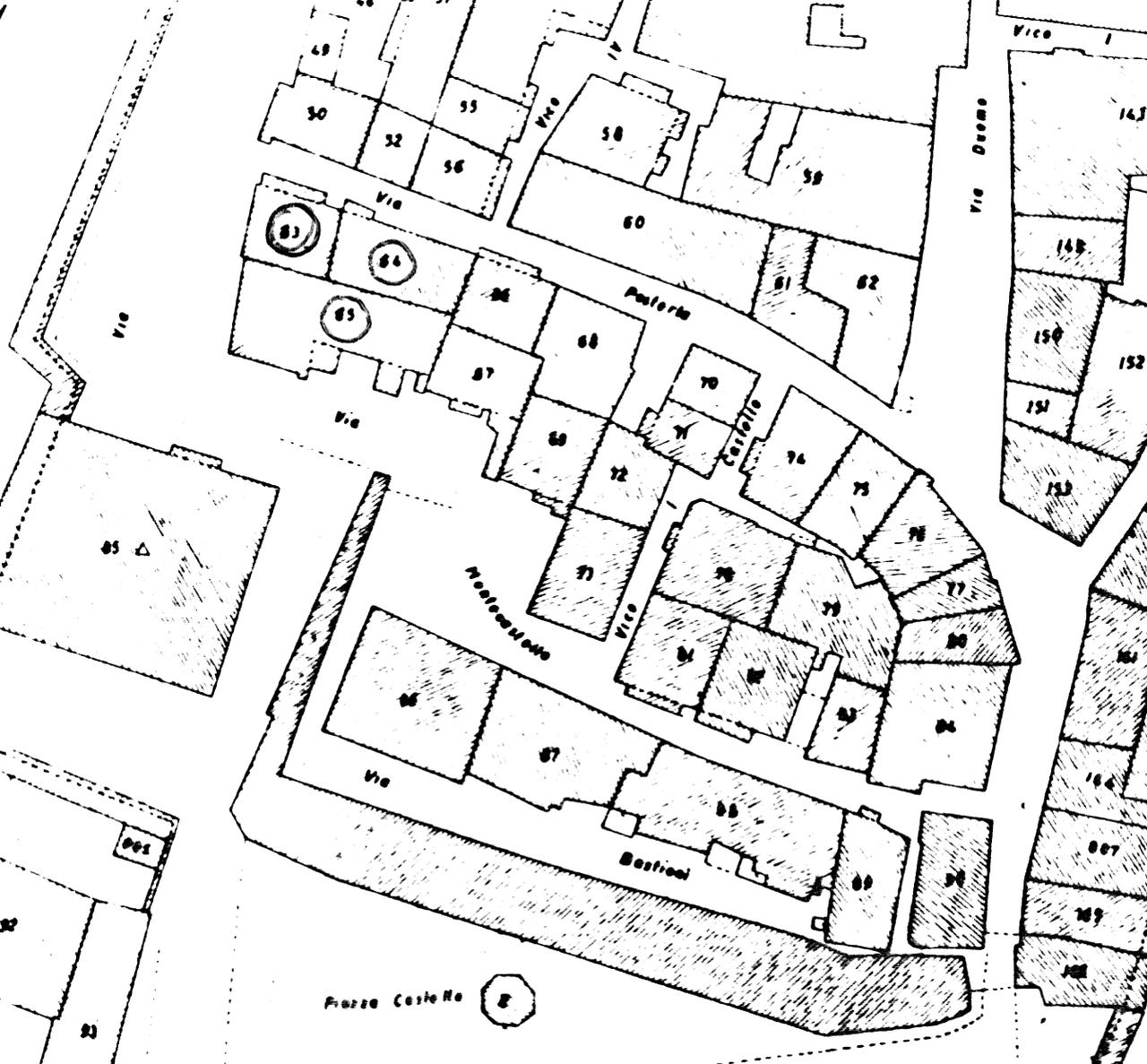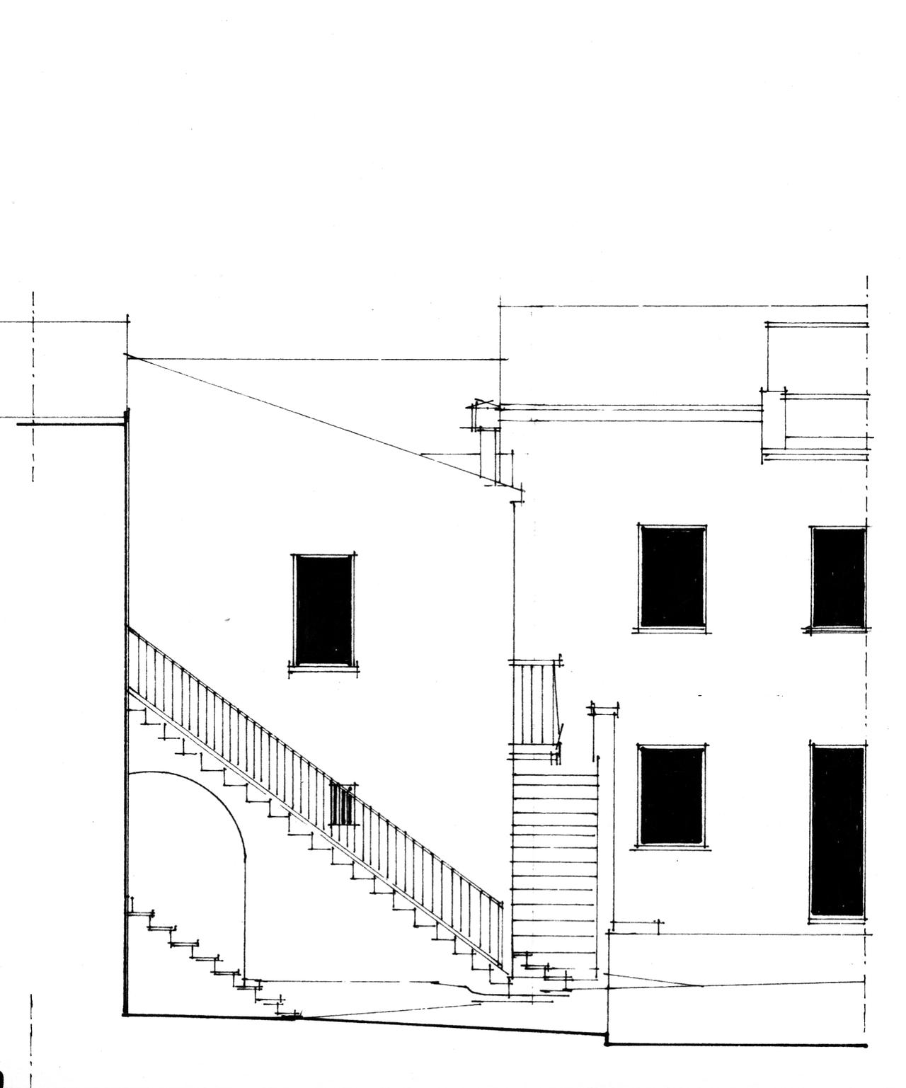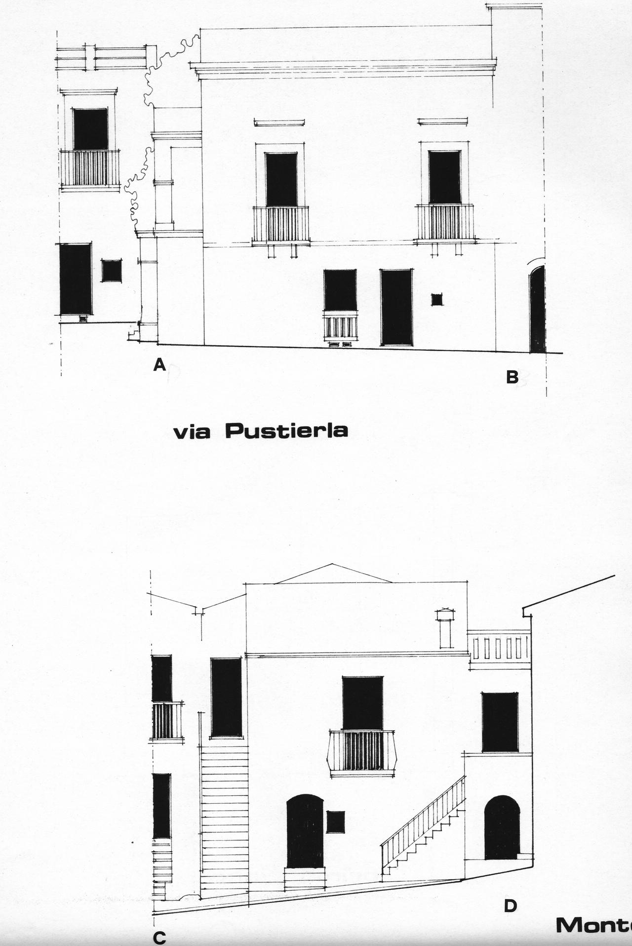 Gli edifici hanno gli affacci sulle due strade, la parte di via Pustierla è caratterizzata da un fabbricato con una interessante loggia. Sul lato contrapposto la facciata è caratterizzata da due scale esterne che segnano un fronte altrimenti molto semplice. il complesso si sviluppa su piani diversi a varie quote. Negli immobili complessive sette unità abitative