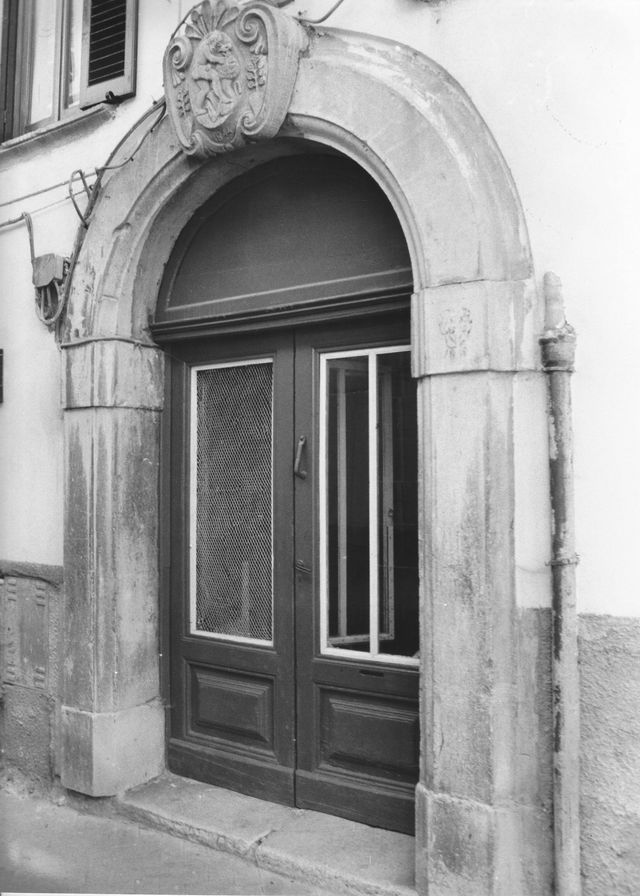 L’edificio in pianta di forma rettangolare sviluppa su tre livelli di piano, la muratura portante è in pietra ed è intonacata; la copertura è a due falde. Sulla facciata principale l’ingresso è segnato da un portale in pietra con arco a tutto sesto e concio di chiave con figura umana, motivi floreali e volute