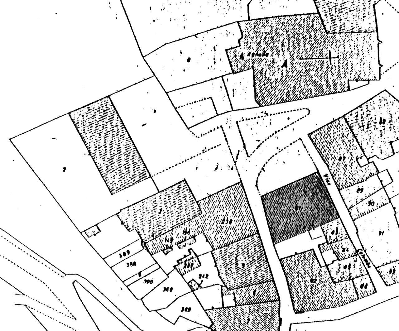 L’edificio in pianta di forma trapezoidale si sviluppa su quattro livelli di piano, la muratura portante è in pietra ed è intonacata; la copertura è del tipo a falde in parte raccordate a padiglione e termina con un cornicione alla romanella. Sulla facciata l’ingresso è segnato da un portale in pietra con arco a tutto sesto e chiave di volta a motivi floreali e volute