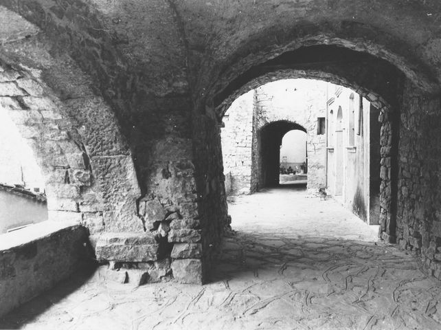 Edificio a blocco, di forma ad L, con muratura portante in pietra a vista e orizzontamenti realizzati con solai in ferro elegno. Al piano terra è sito passaggio urbico con accesso da porta con arco ribassato. Nell'immobile oltre le due unità abitative un magazzino