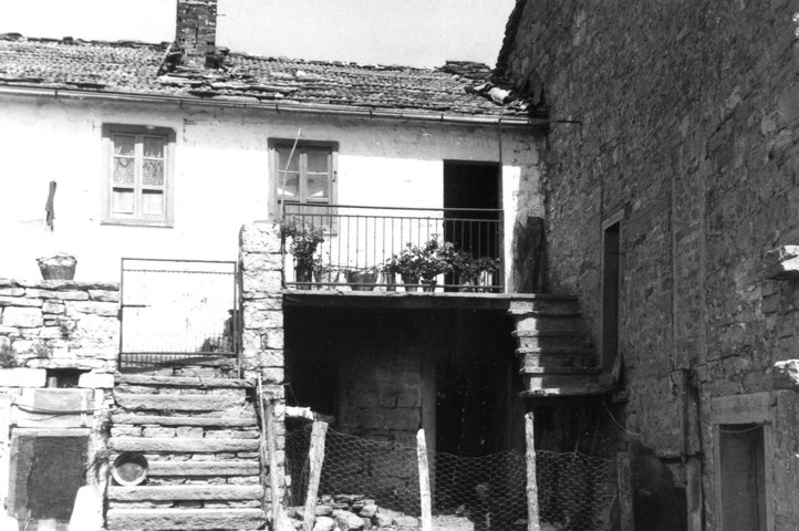 Il casolare si presenta ad un piano e ricco di elementi aggettanti. È affiancato ad un altro fabbricato dalla rilevante volumetria e con questo comunica tramite una piccola scala esterna che scende dal ballatoio e conduce ad un accesso posto su un piccolo pianerottolo. La scala esterna che conduce ai ballatoi è posta ortogonalmente al fronte dell'abitazione e dopo un piccolo pianerottolo, si biforca per raggiungere i ballatoi posti a destra e sinistra. Il ballatoio di sinistra è realizzato con putrelle e calcestruzzo e la balaustra è realizzata con blocchi e lastre di arenaria
