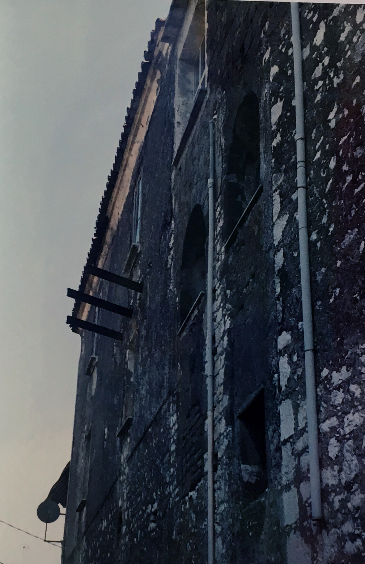 edificio di forma trapezioidale con muri, nella parte bassa della facciata a mezzogiorno, in pietra artificiale restanti muri in tufo intonacato
