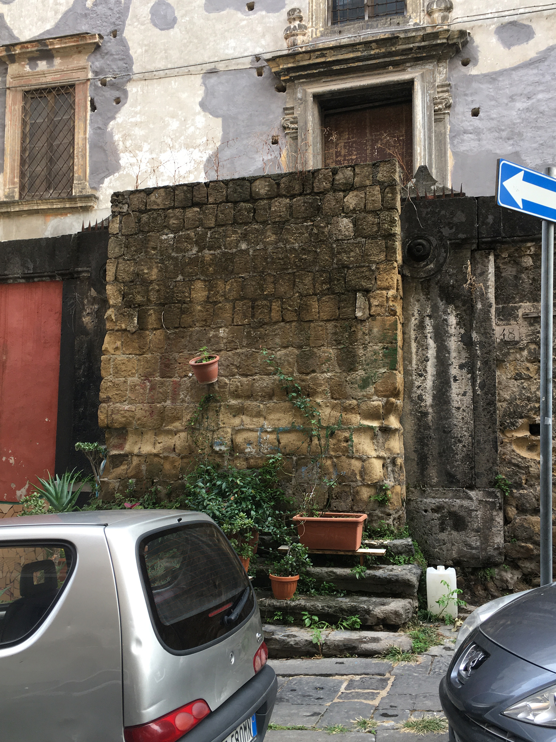 In via M. Longo vi è l'ingresso principale (murato) della Congrega de Bian chi posto su una devastata graginata in piperno