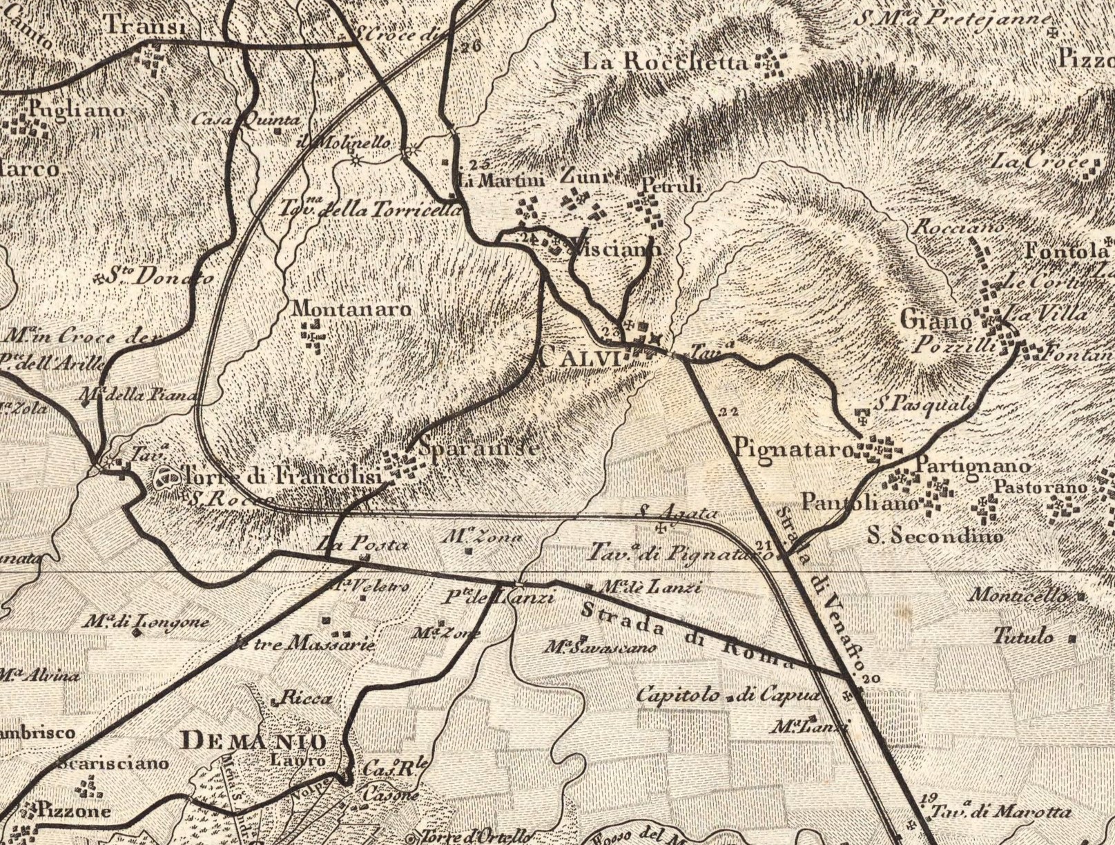 - NOTIZIE STORICO CRITICHE Inserita nel territorio dell’antica Cales, fu con molta probabilità popolata fin dall’antichità; dal “Cronicon Vulturnense” del 988 si evince che vengono assegnati corti e terreni del posto. L’origine dell’attuale abitato risale tuttavia al X-XI secolo, periodo in cui nella zona sorsero numerosi nuovi insediamenti, grazie all’opera dei monaci benedettini di Montecassino e di San Vincenzo al Volturno. Dopo aver fatto parte dei possedimenti dell’abbazia di San Vincenzo al Volturno, divenne casale di Calvi (l’odierna Calvi Risorta) e ne seguì le sorti. Il 12 gennaio 1799 fu teatro della firma di una tregua tra il corpo di spedizione napoletano inviato da Ferdinando IV contro la Repubblica Romana e i francesi comandati dal generale Championnet –il 23 gennaio 1799 i francesi conquistarono Napoli e fornirono il loro appoggio alla neonata Repubblica Partenopea–. Nel 1806 Gioacchino Murat, in visita nella zona, regalò alla chiesa dell’Annunziata due confessionali e un organo razziati a Roccamonfina. Divenne comune nel 1807, allorché si staccò da Calvi Risorta. Da questo momento in poi fu investita in quel processo di sviluppo che portò alla realizzazione del primo acquedotto per civile abitazione, nonché alla nascita della Fabbrica di Armi Bianche, inaugurata nel 1848 da Ferdinando IV, alla costruzione della “Casina Reale”, della “Fontana Beatrice” (1880) e, infine, alla realizzazione del complesso industriale più grande del mezzogiorno (la Pozzi, nel 1960)