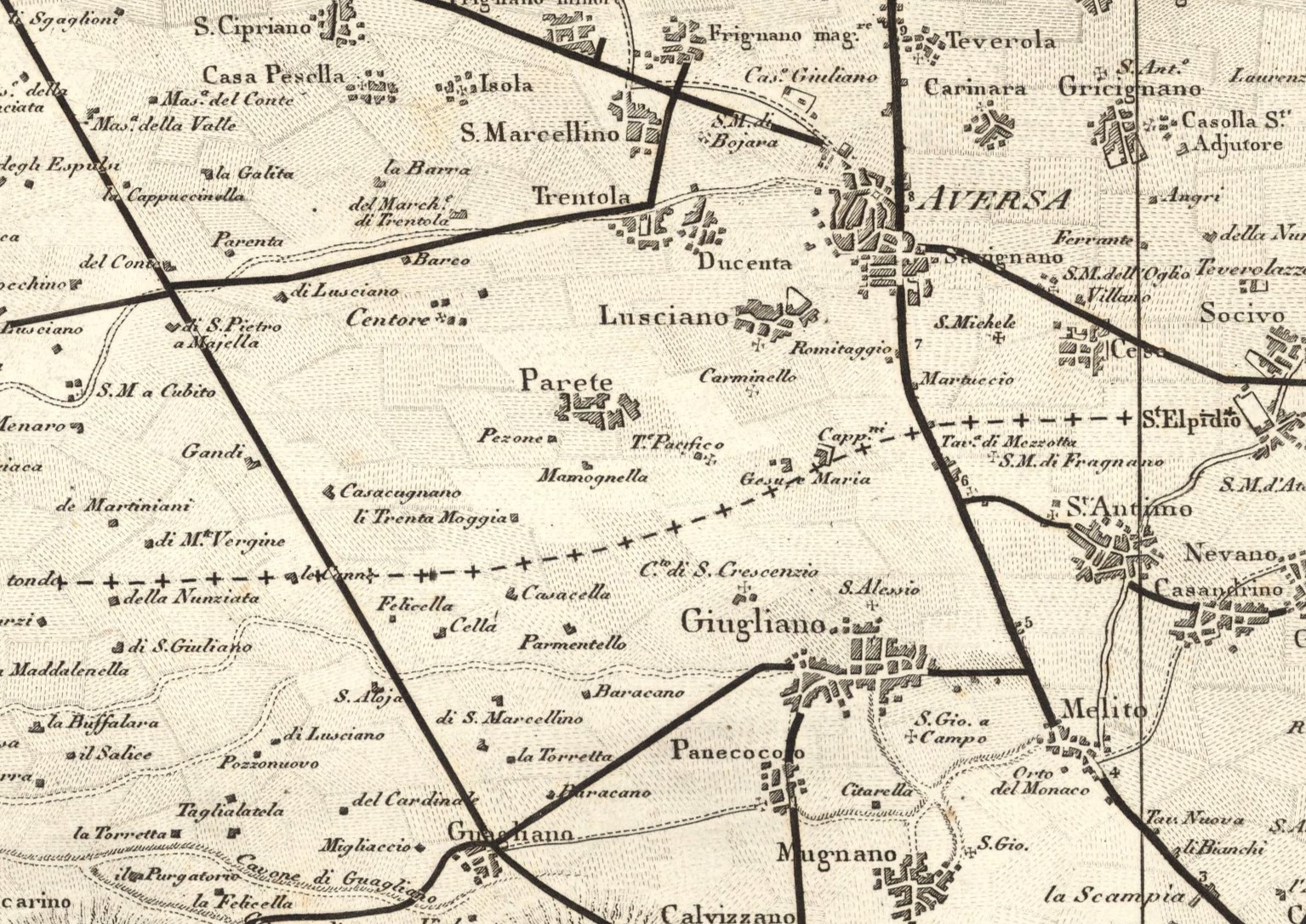 E' situata nella Terra di Lavoro, alla sinistra del fiume Volturno e a sud dei Regi Lagni